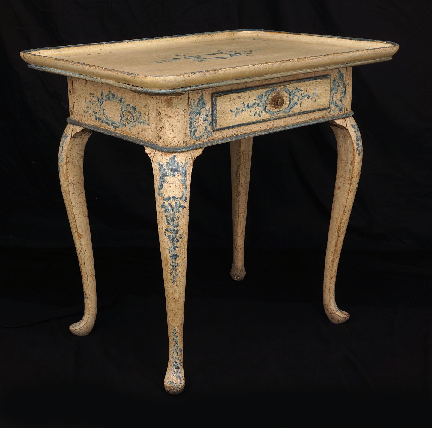 An original decorated Rococo table with blue decorations Denmark circa 1760 H: 79cm. Top: 82x61cm Item number: 1262/3