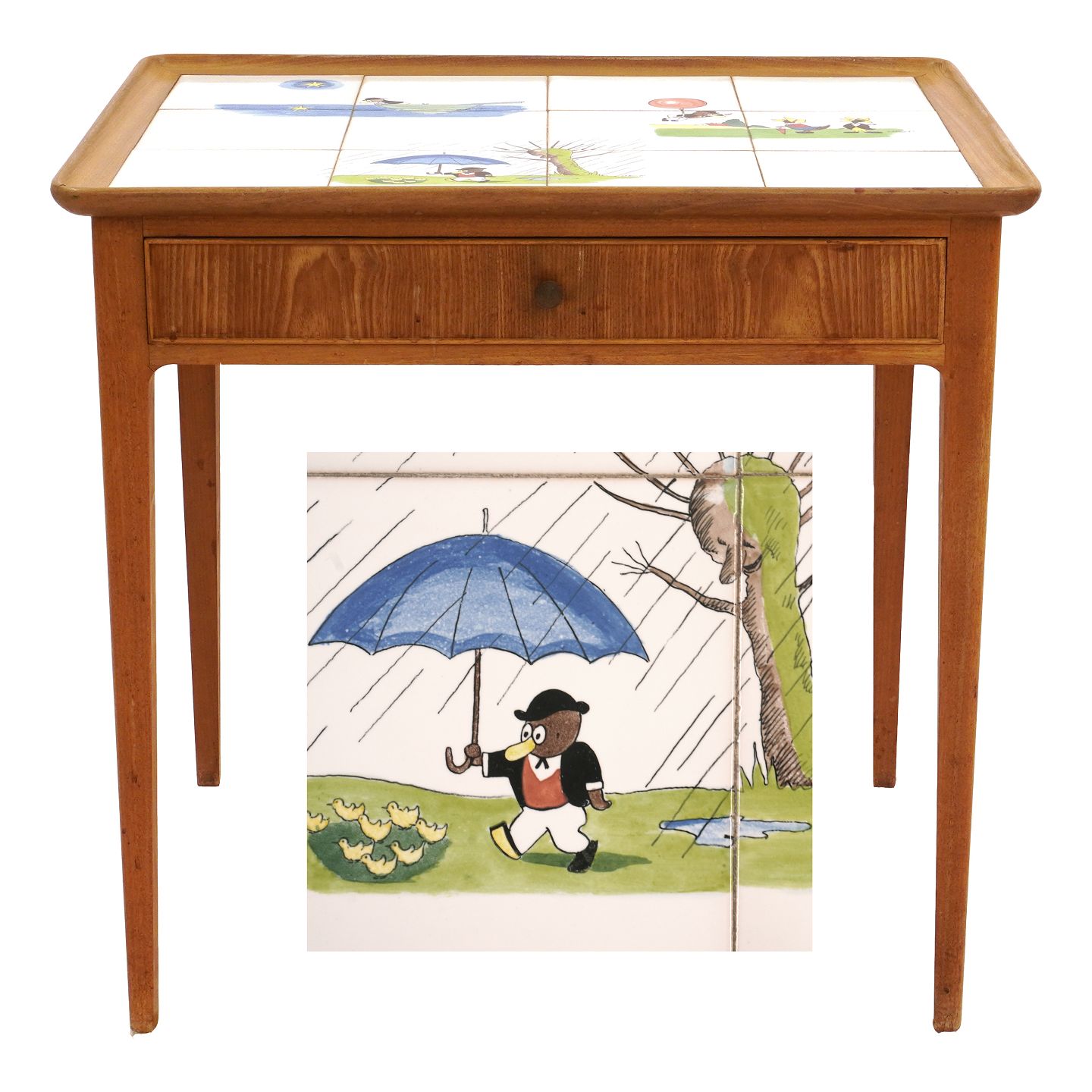 Rare Danish tile top table by the Danish artist Storm P. H: 65cm. Top: 52x68cm Item number: 313