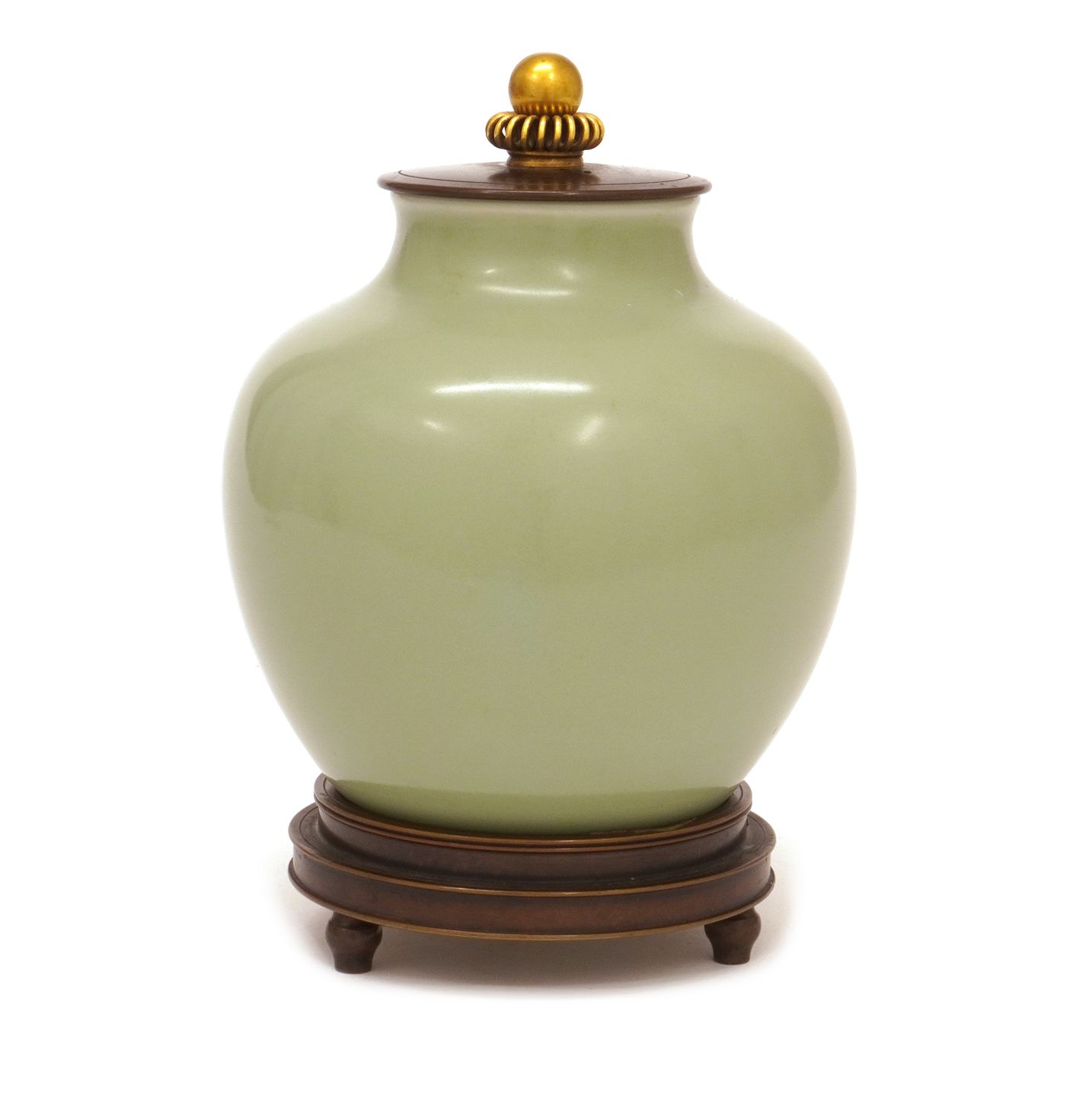 Lidded stoneware vase made by Royal Copenhagen 1935 Bronzelid and -base by Knud Andersen H: 17,5cm Item number: 649B