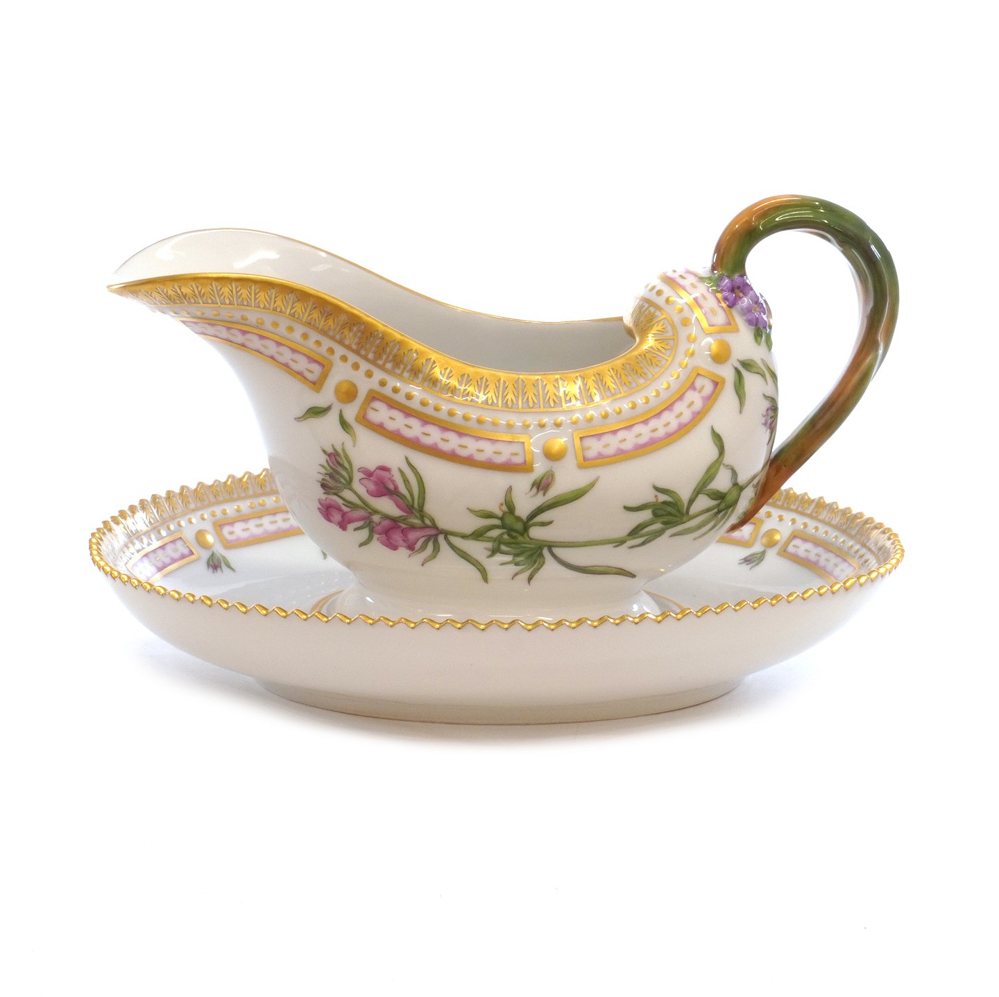 Flora Danica sauce boat #3556 Nice condition Year 1974-78 1974-78 "Antirrhinum Orontium L." H: 14,5cm. L: 23cm Item number: 664E