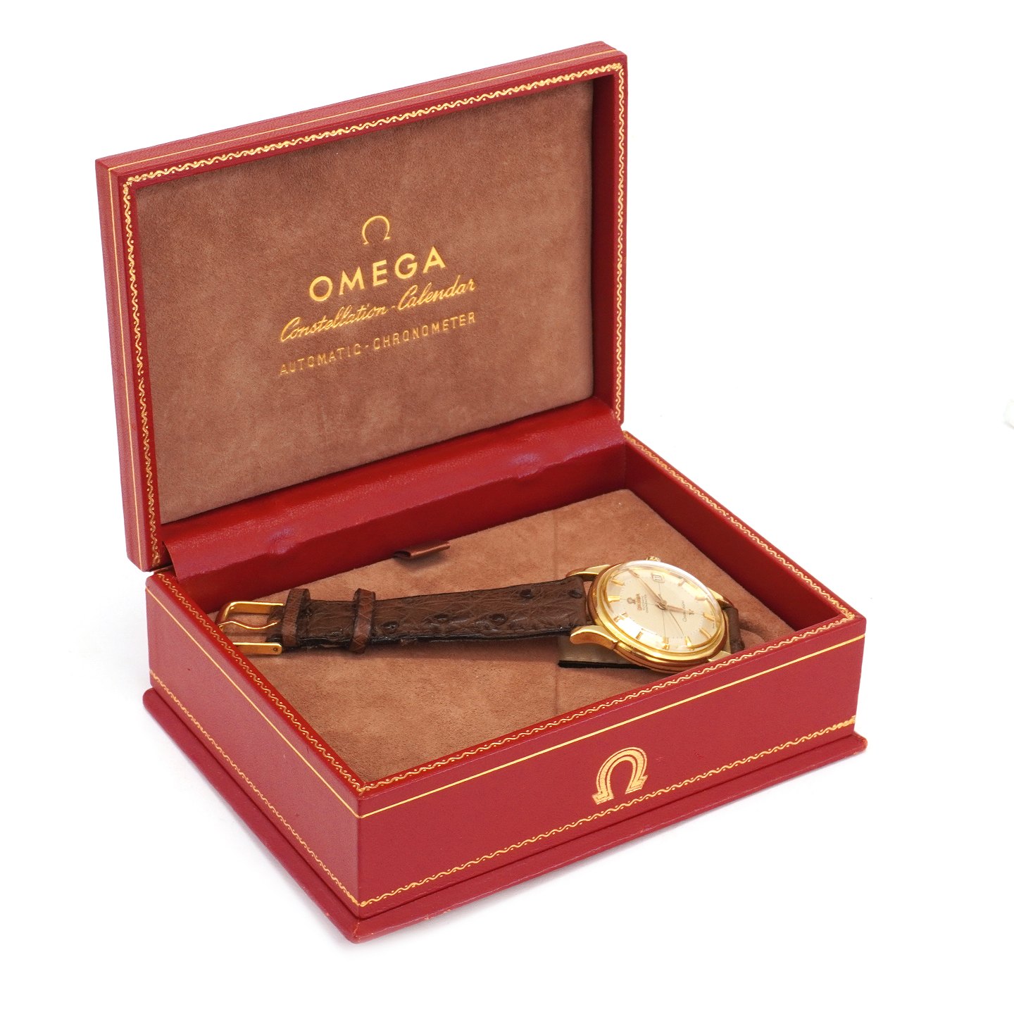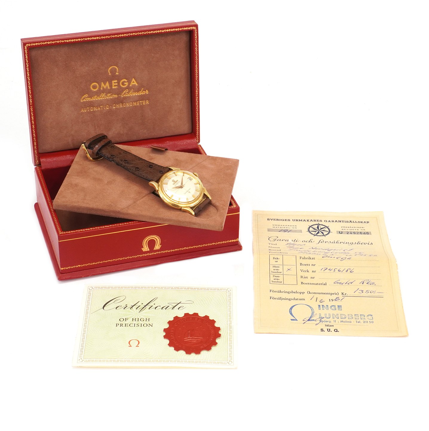 Omega Constellation Pie Pan i 18kt guld med box og certifikat ref. 14382 82SC solgt 01.06 1961