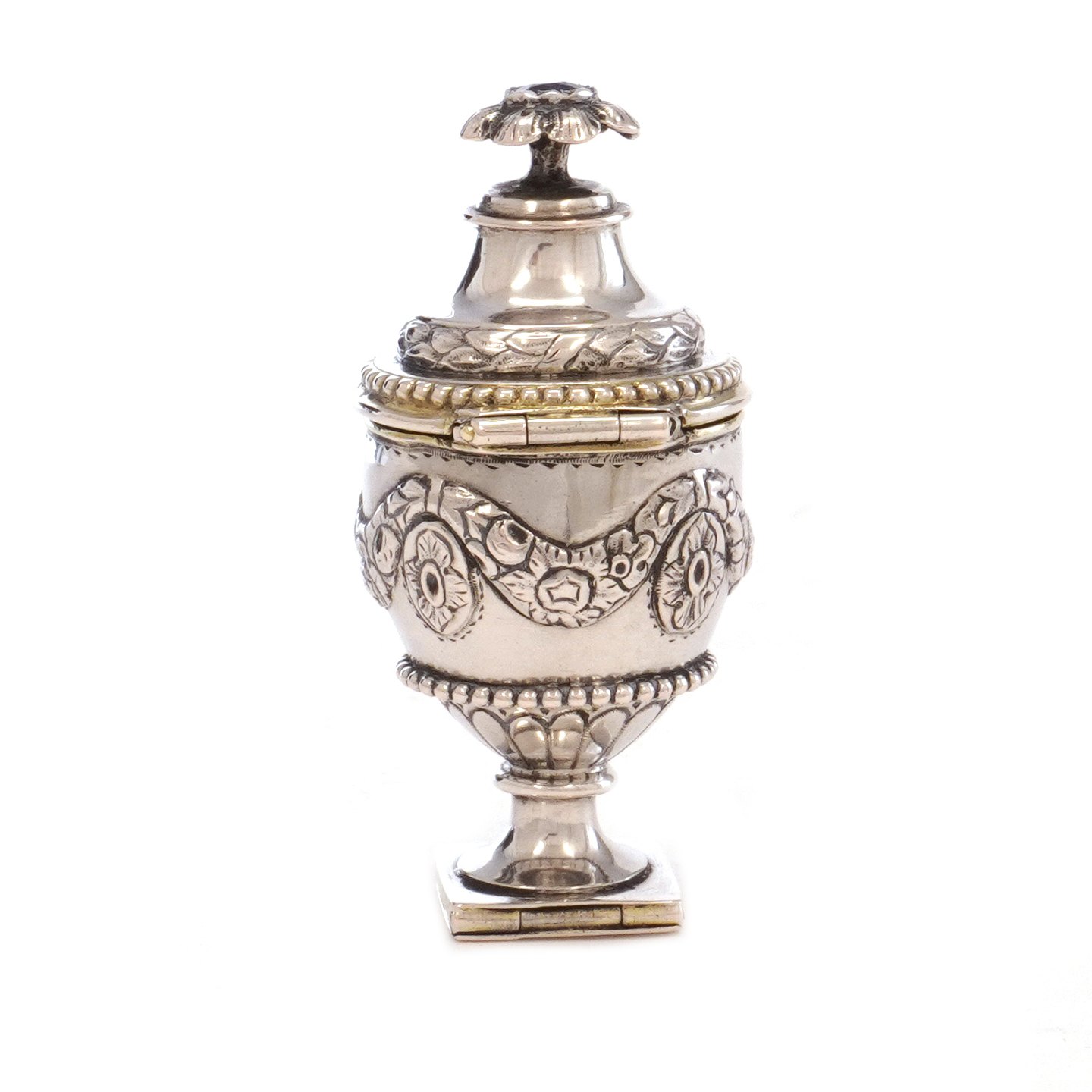 Barok tedåse med låg, messing, ligeknækket. Danma
