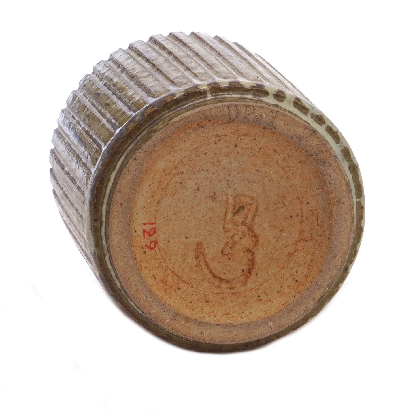 Arne Bang riflet stentøjs vase 129. Signeret. H: 8,8cm