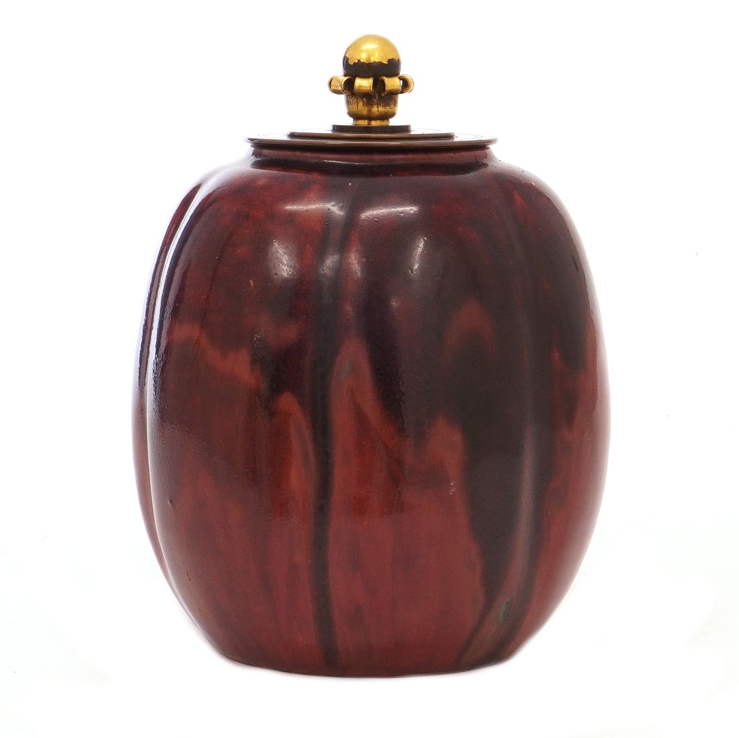 Carl Halier stentøjsvase med okseblodsglasur og bronzelåg af Knud Andersen