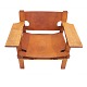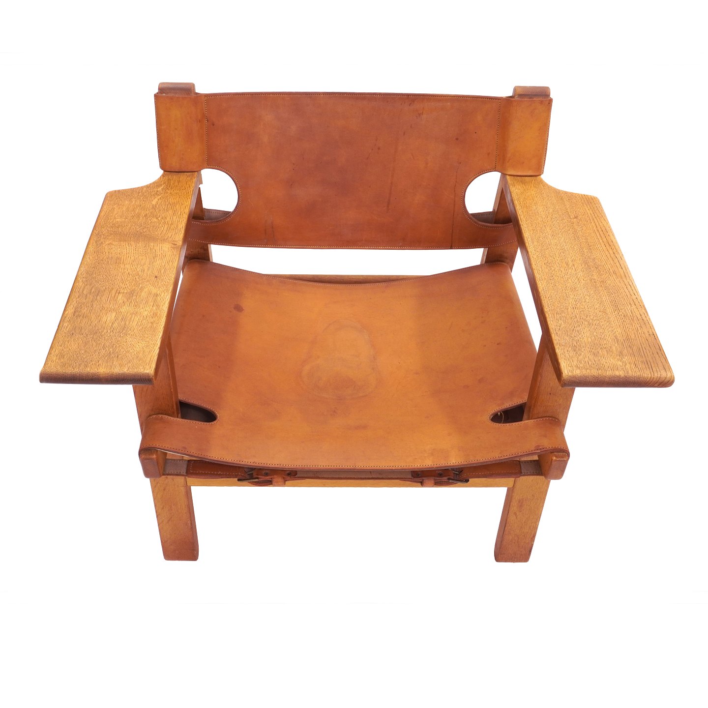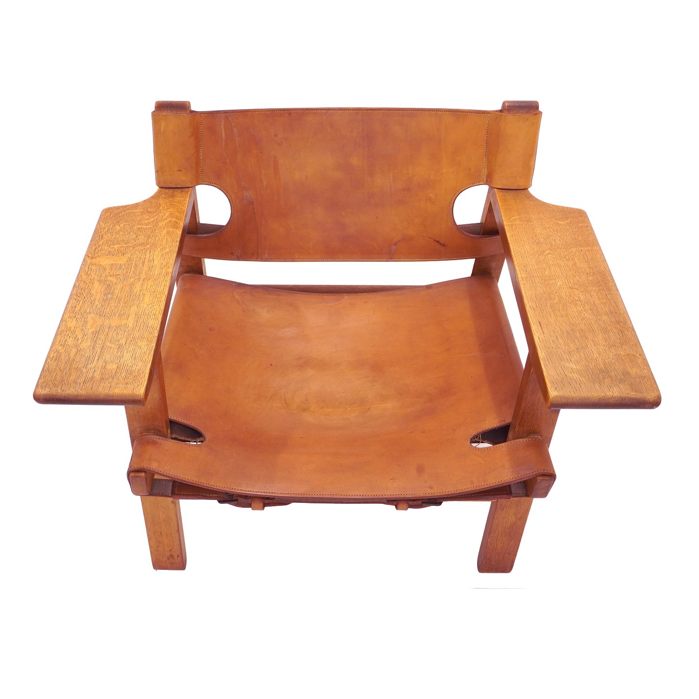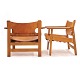 Pair of early Børge Mogensen Spanish Chairs with patinated oak and leather