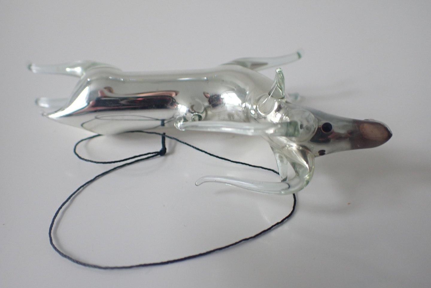 Glasjulepynt - sjælden glashjort, sølvfarvet. Med glasophæng. Leipzig tidlig 1900-tal. Højde. 5,2 cm. Længde: 9 cm. Hel og fin stand uden afslag.
