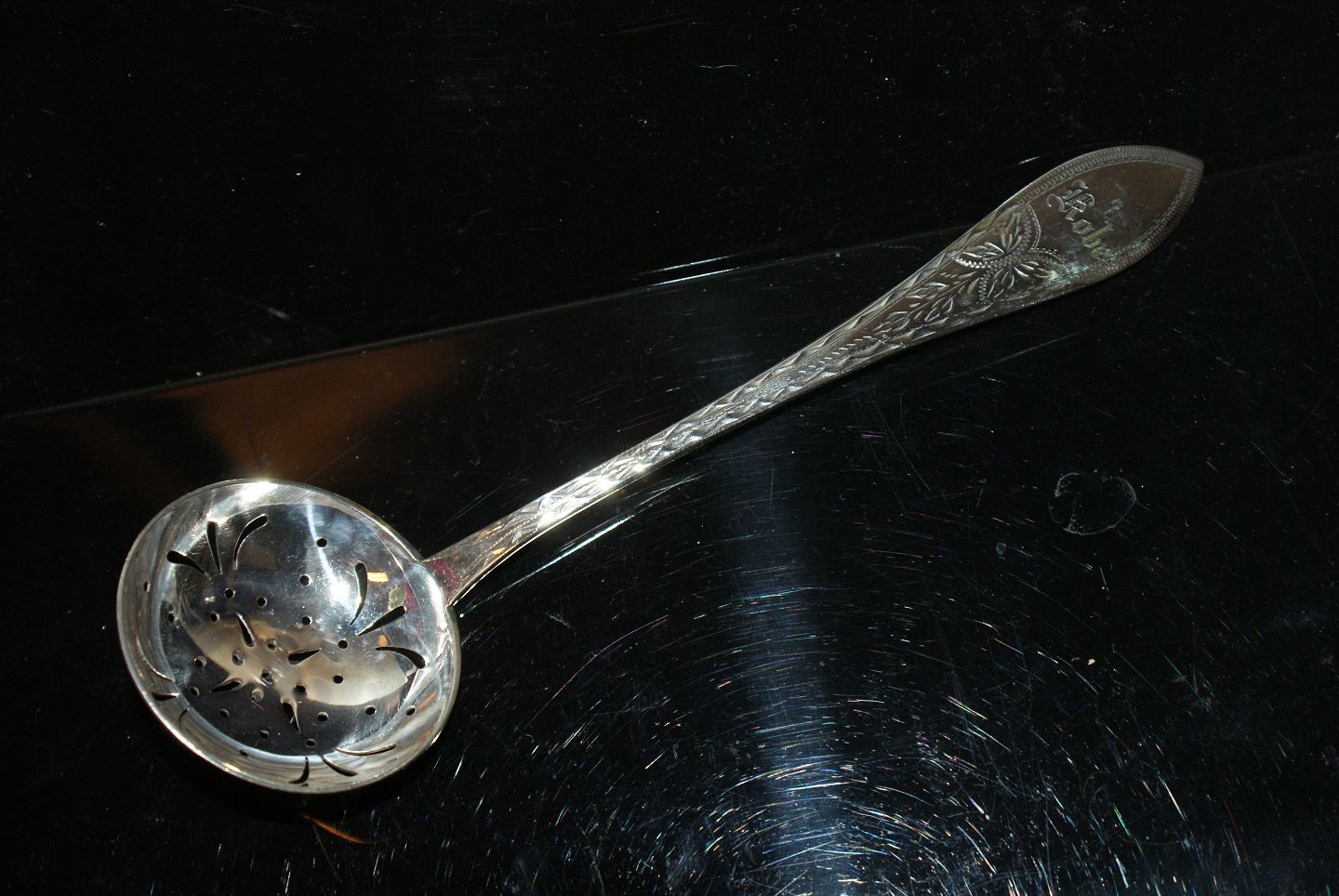 Sprinkle spoon Empire Silver With initials Engraved year 1911 Length 15.5 cm. Well maintained condition Polished and packed in a bag