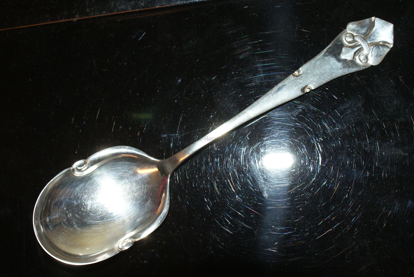 Compote spoon French Lily silver Length 18 cm. Beautiful and well maintained The cutlery is polleret and packed in a bag.
