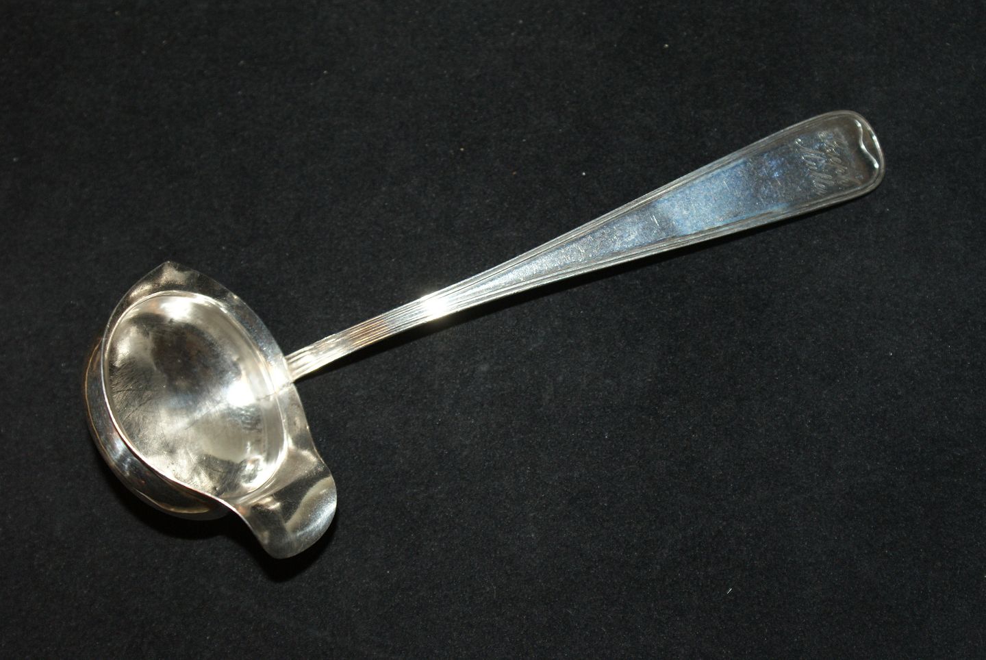 Cream spoon From 1868 Old Plain Silver Grade 13 1/4 Length 15.5 cm. with engraved initials Beautiful and well maintained.