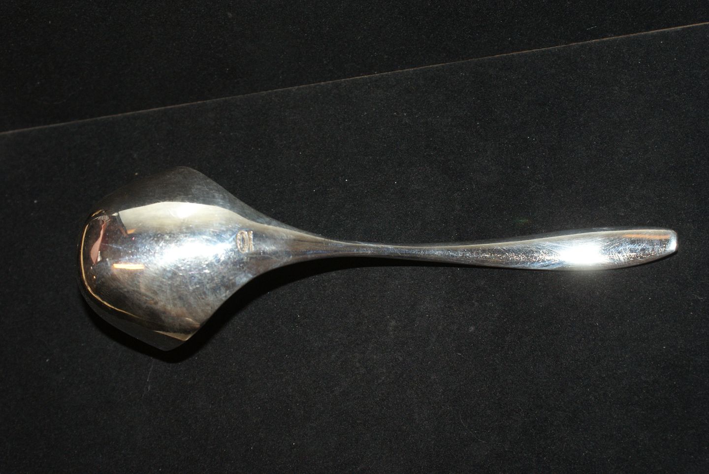 Saucespoon Jeanne Sterling silver Designed in 1956 by Jeanne Grut and produced by Slagelse Silversmith A.C. Illum Length 17.5 cm. Beautiful and well maintained. All cutlery is polished and packed in a bag