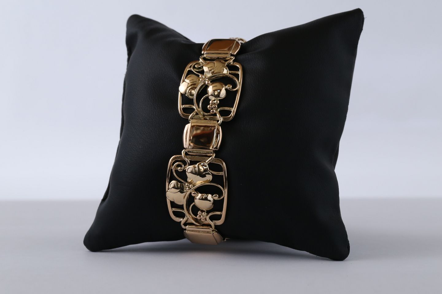 This beautiful gold bracelet is made with beautiful details, and clearly dedicated craftsmanship, The bracelet that it should be worn with a short-sleeved dress or sweater, so that the beautiful design comes into view. Each link is made like a small work of art with beautiful leaves and curved shapes.