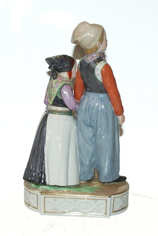 Kongelig Overglasur Figur, Amager Dreng & Pige i Dragter Design: Carl Martin-Hansen 1907 Dekoration nummer 12106 1. sortering Højde 22 cm. Flot og velholdt