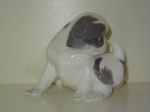 Rare Royal Copenhagen Pekingese Puppy from before 1923, decoration number 445, factory first, measures 14.5 by 12.5 cm. Perfect condition.