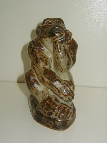 Royal Copenhagen Figurine by Knud Kyhn, Monkey, decoration number 21411, factory first, measures 14 by 12.5 cm. Perfect condition.