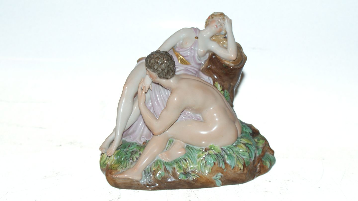 Rare Royal Copenhagen Overglaze Figure, Man & Women Decoration number 12208 (12008) Factory 1st quality Height 13 cm. Beautiful and well maintained