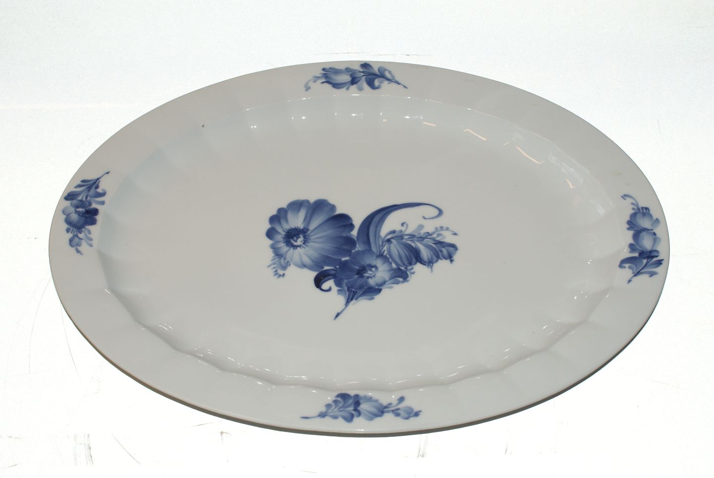 Royal Copenhagen Blå Blomst Kantet, Stort Ovalt stegefad Dek. nr. 10/8541 2.Sortering Længde 46,5 cm. Brede 35,5 cm. Pæn stand.
