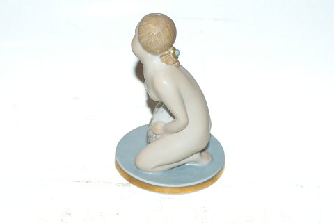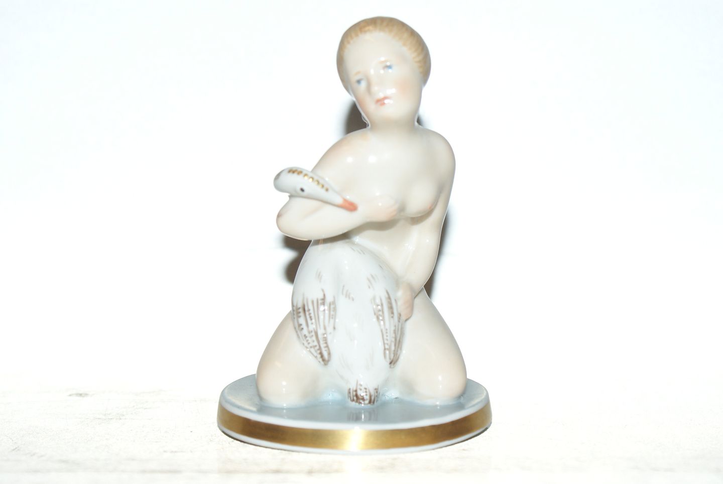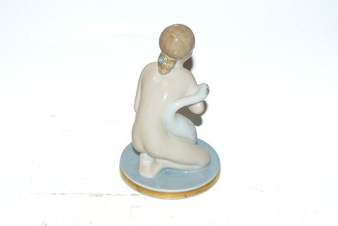 Royal Copenhagen over glaze Figure, Kneeling girl with Swan