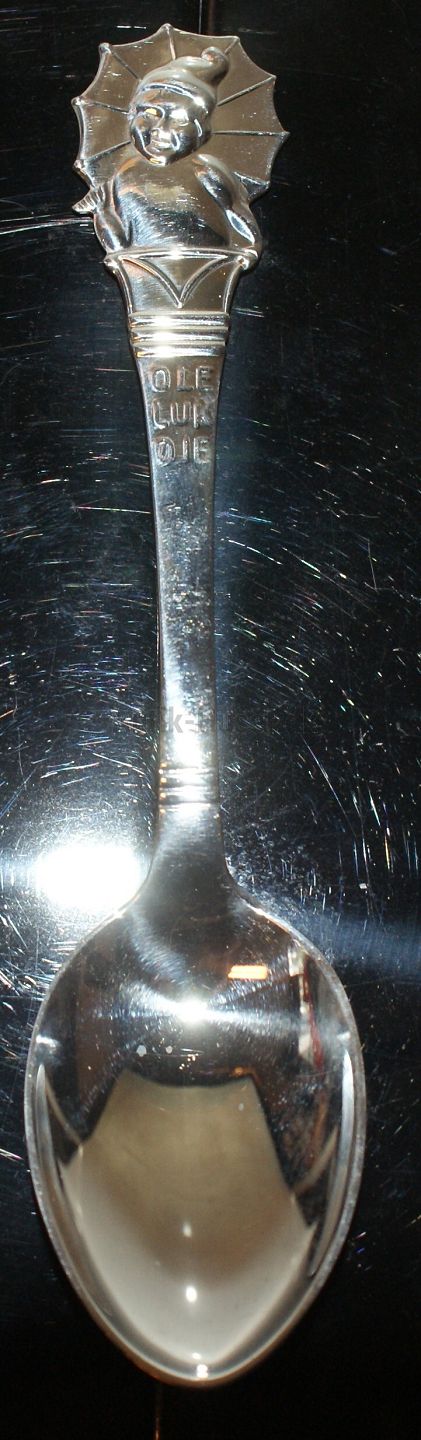 Ole lukøje barneske Sølv H.C. Andersens digte og eventyr er kendt verden over. Stemplet Tre tårne Længde 14,5 cm Ingen gravering Brugt men velholdt.