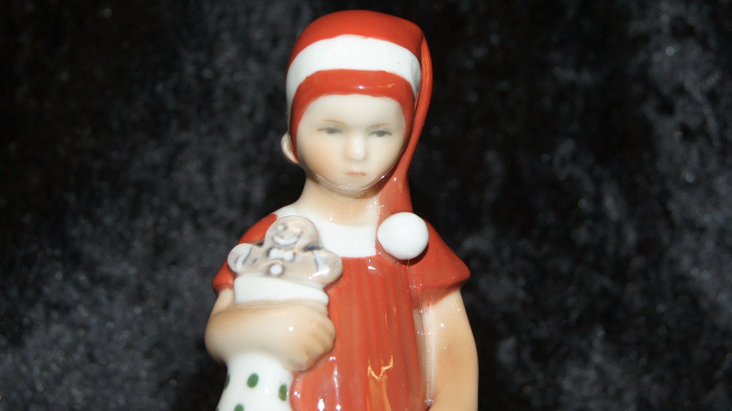 Royal Copenhagen #Else med julehue og julesok rød kjole Dek nr #092 1 Sortering Højde 13 cm Pæn og velholdt stand