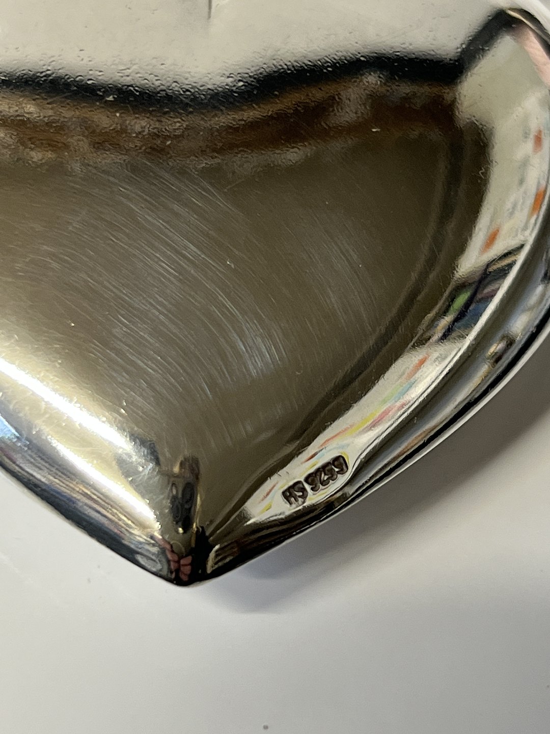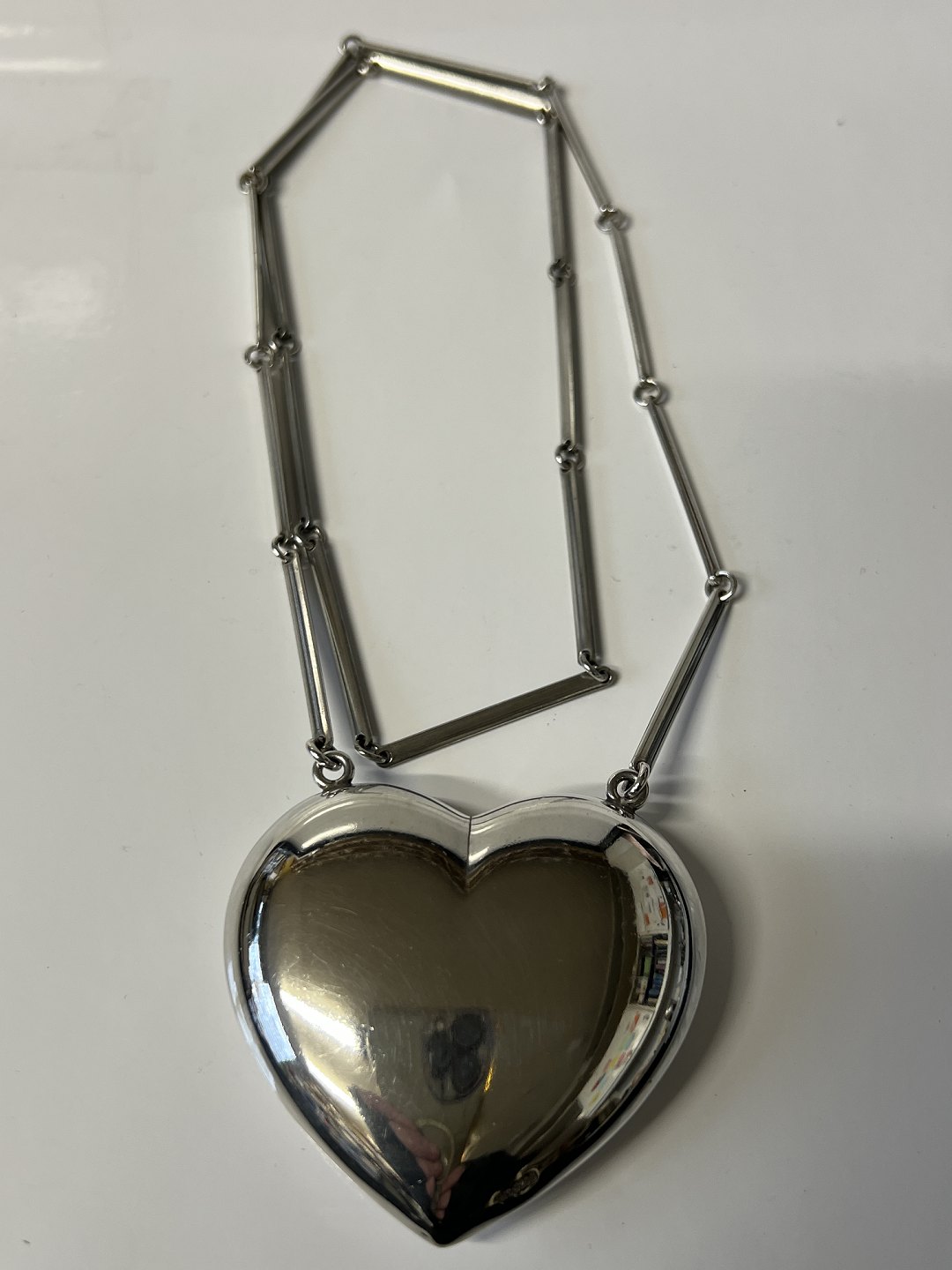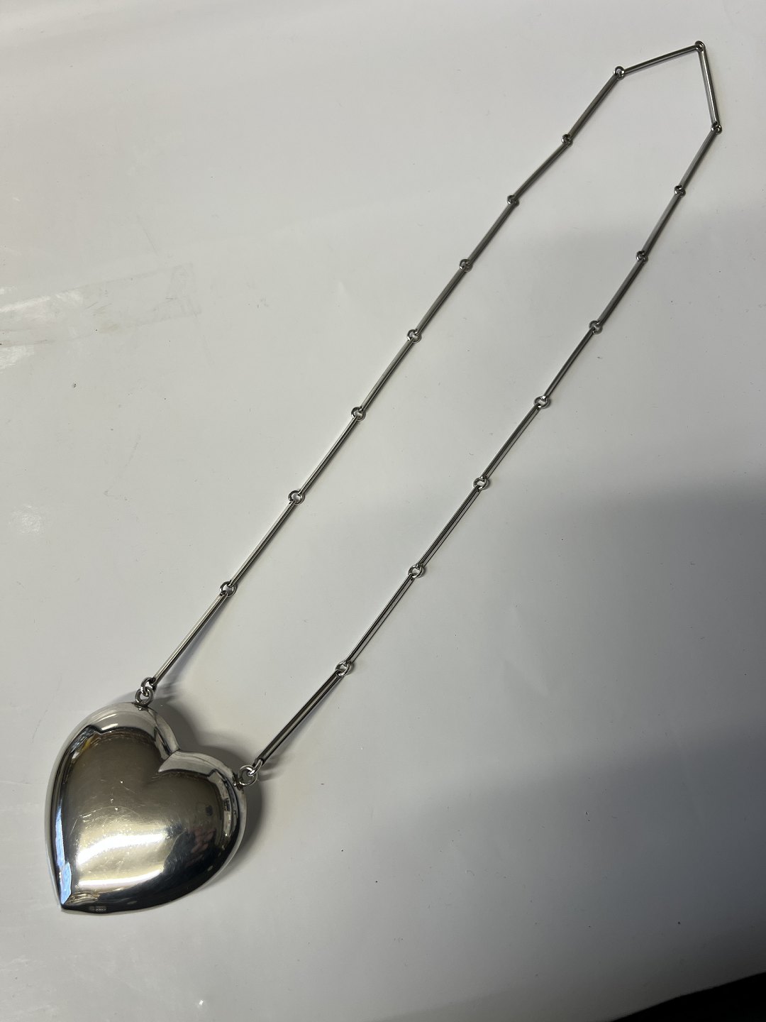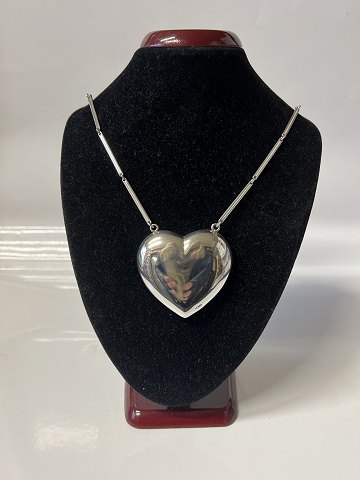 Hjerte med Sølv halskæde i sterling sølv Stemplet HS 925S Længde på Sølvkæden 66 cm Længde på Hjertet 5,3 cm Bred. 6 cm Pæn og velholdt stand