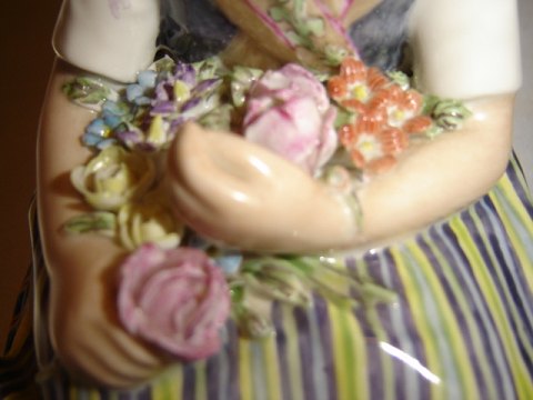 En flot Royal Copenhagen Overglasur Figur af Pige fra Slesvig. Dekorationsnummeret er 12417, 1. sortering, højde 9 cm, længde 11 cm. Perfekt stand