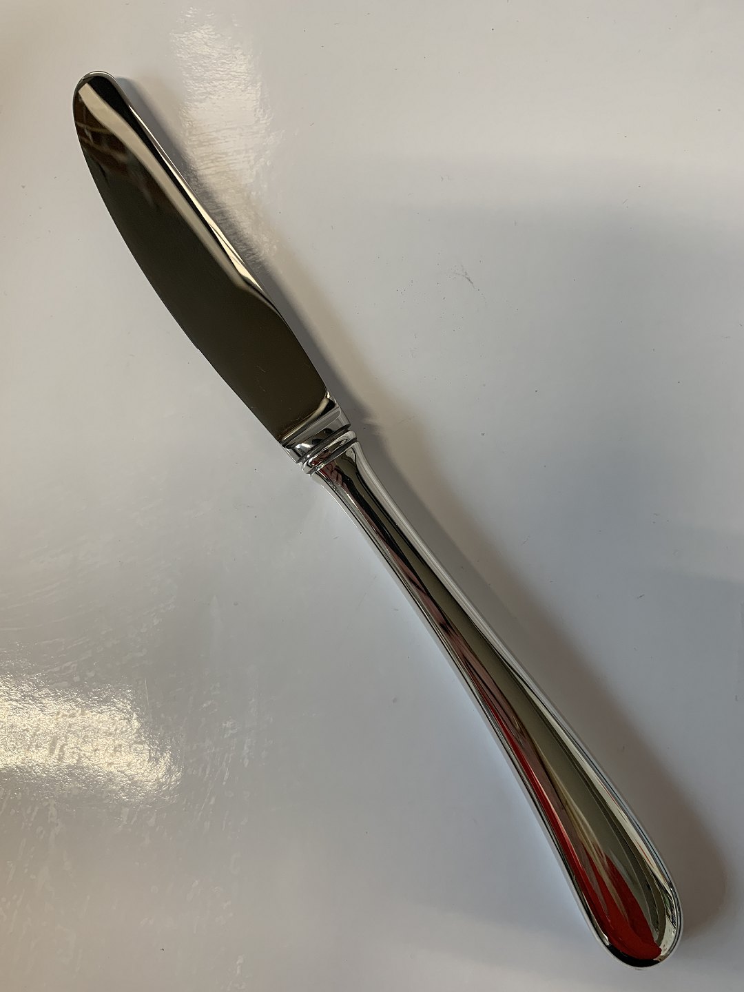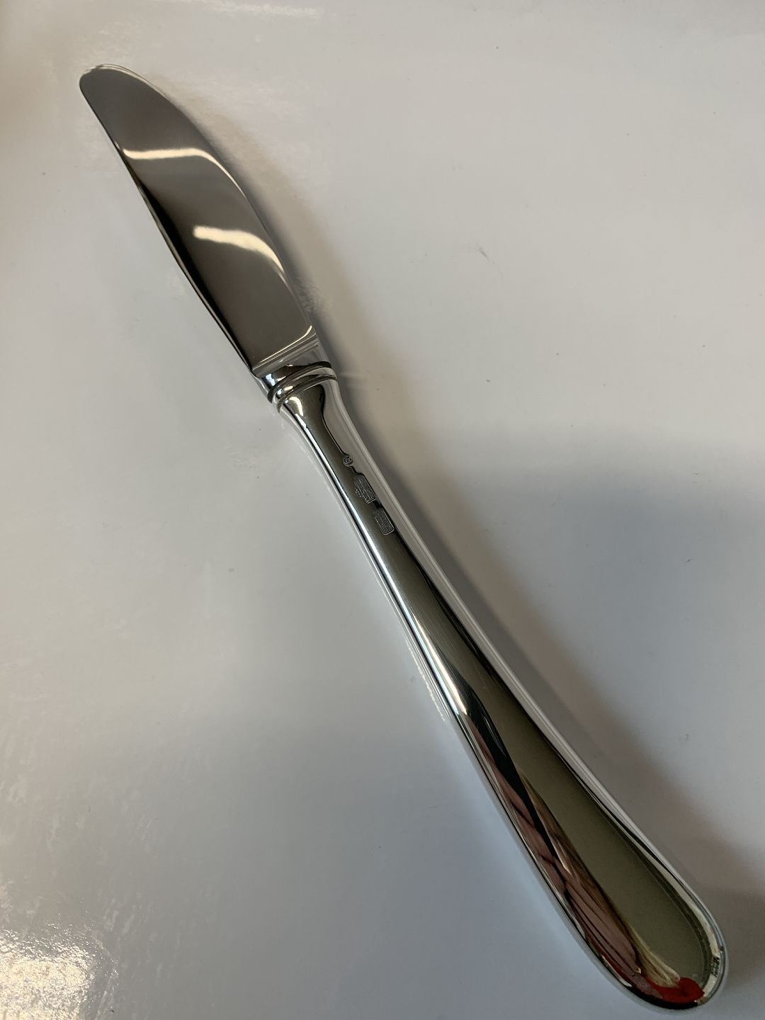 Middagskniv, Ida, A. Michelsen, Sterlingsølv. Længde 23,5 cm. Designet af Ole Hagen. Stemplet Anton Michelsen Copenhagen, Sterling Danmark. Velholdt bestik, poleret og pakket i pose