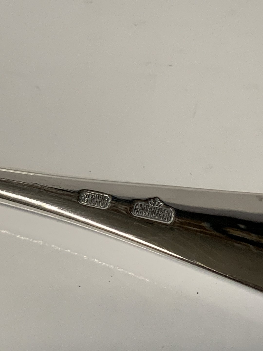 Middagsske, Ida, A. Michelsen, Sterlingsølv. Længde 20,8 cm. Designet af Ole Hagen. Stemplet Anton Michelsen Copenhagen, Sterling Danmark. Velholdt bestik, poleret og pakket i pose