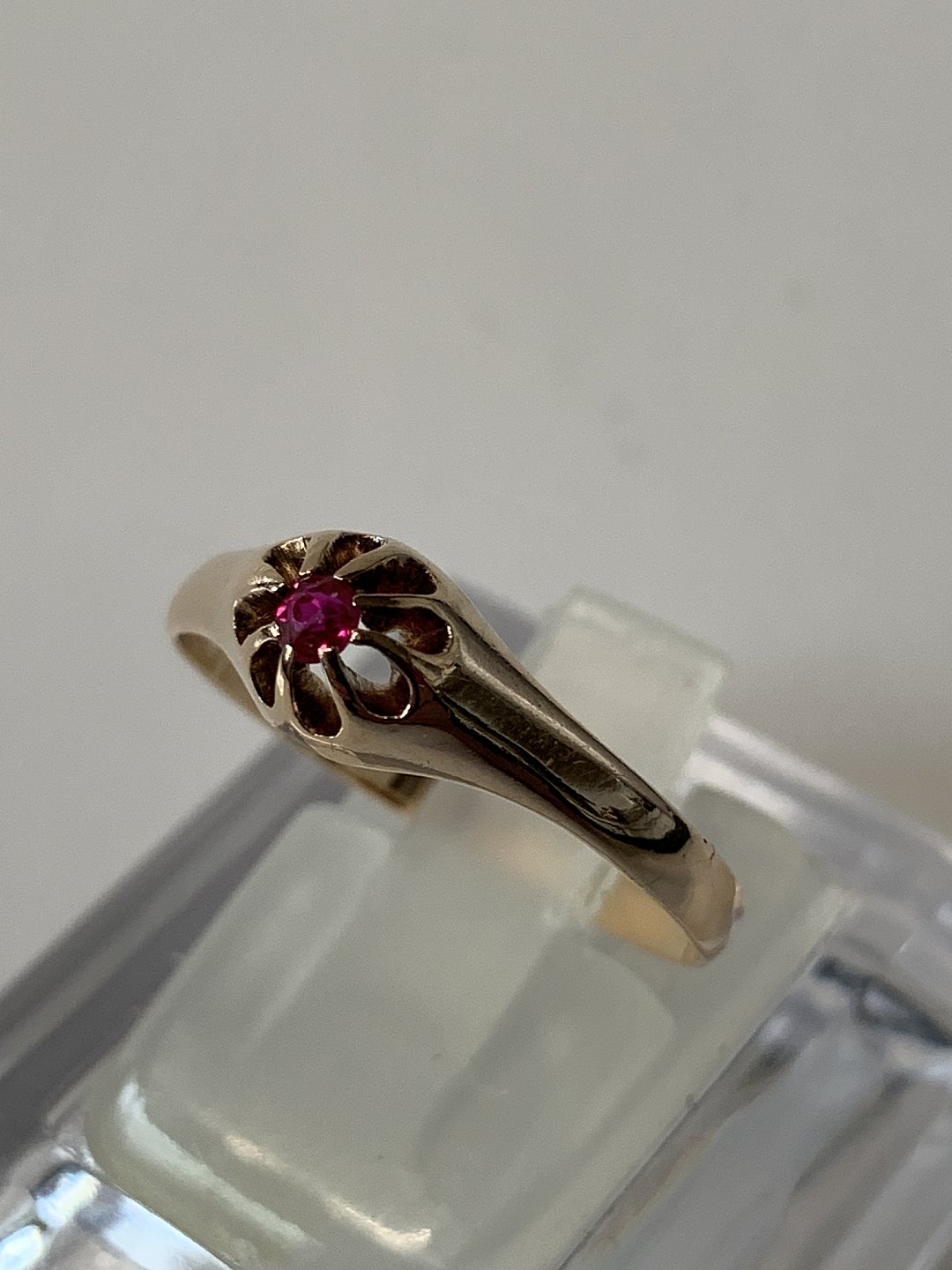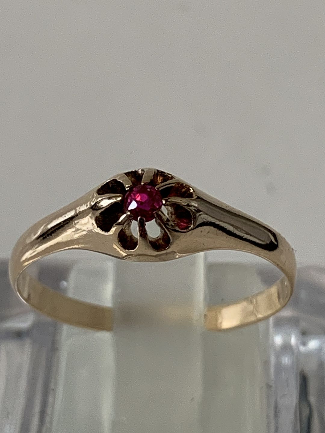 Smuk og elegant guldring med en rød sten i 14 karat guld, Ringen er meget anvendelig til hverdagsbrug.