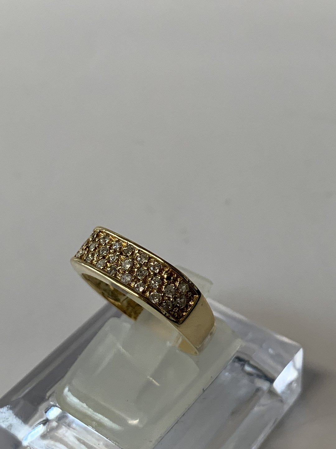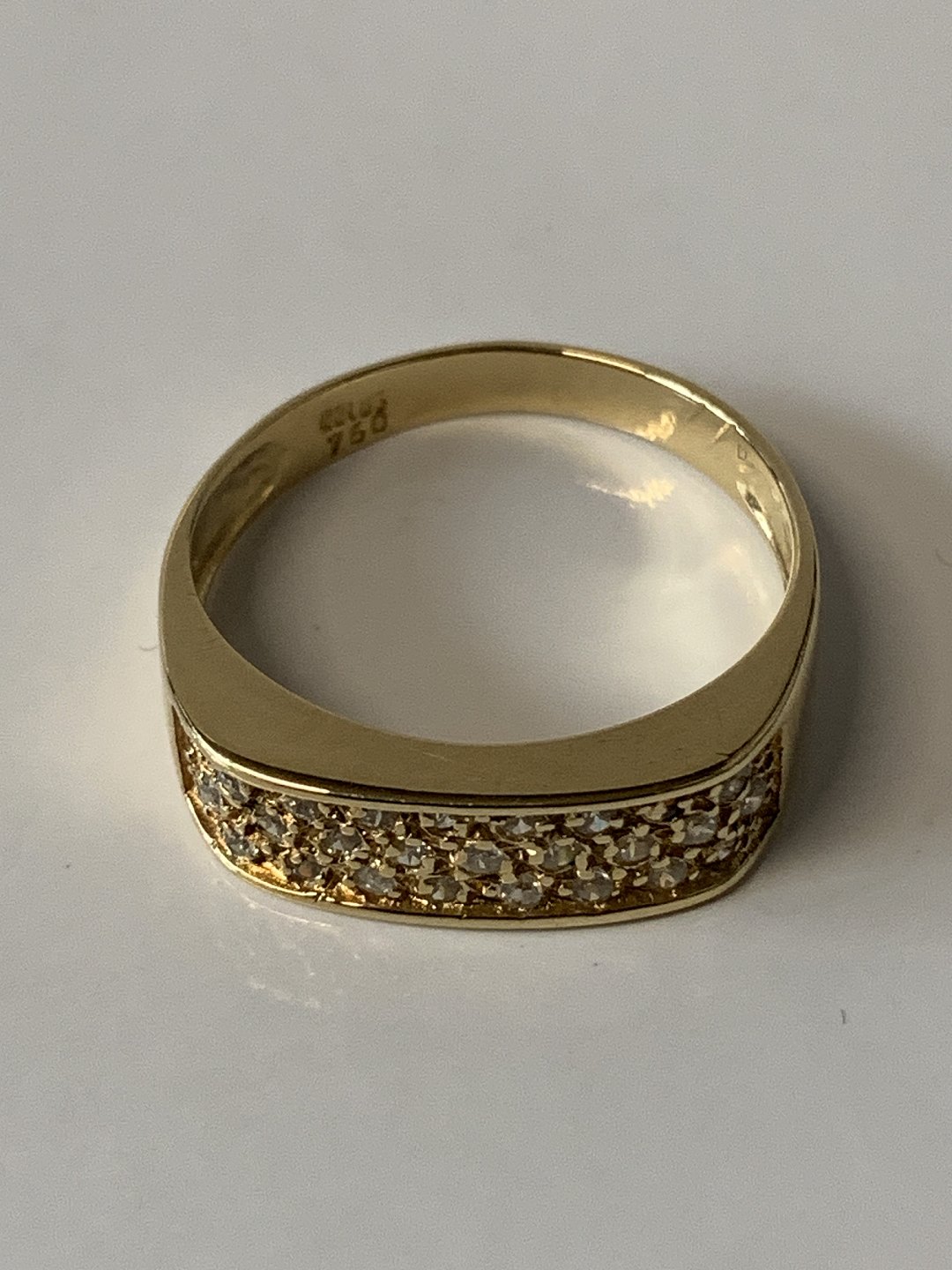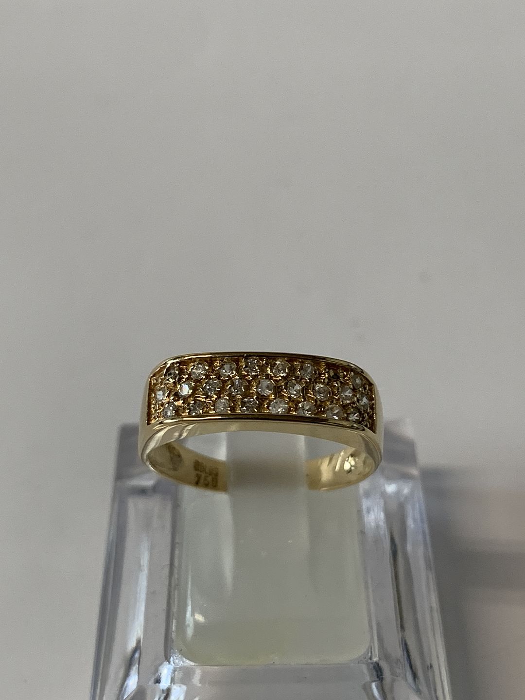 Smuk og elegant guldring med fine hvide sten i 18 karat guld, i enkelt design. Ringen er meget anvendelig til hverdagsbrug, eller til festlige lejligheder. Da ringen er i et enkelt design, er det let at kombinere denne ring med andre guldringe.