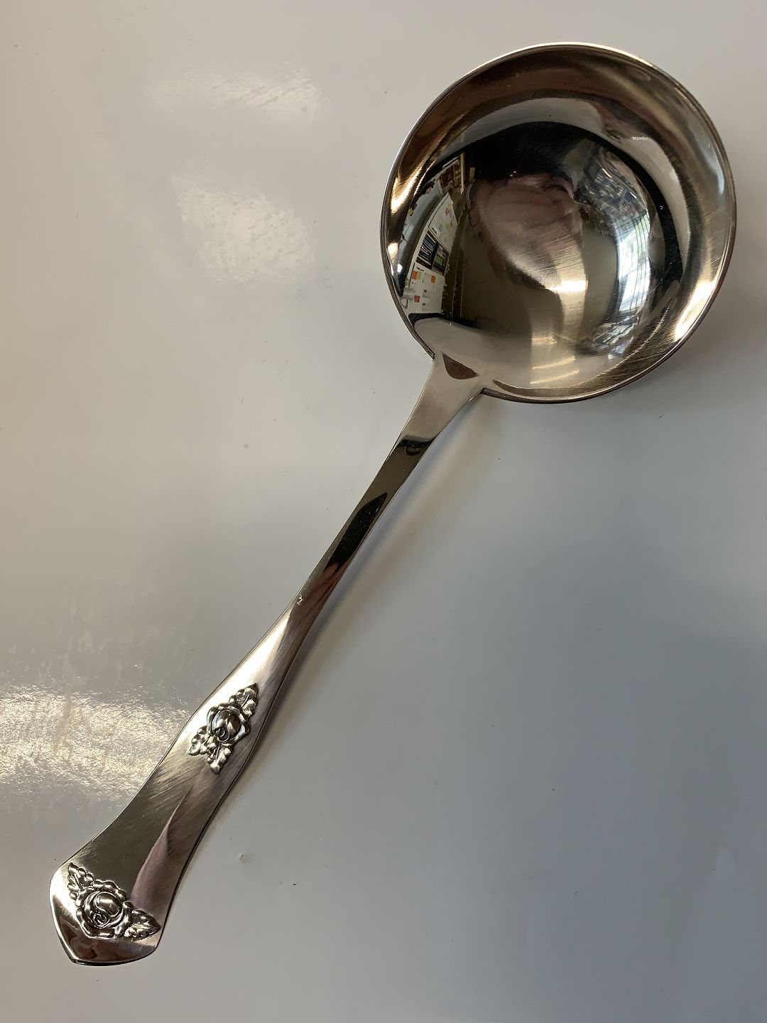 Potato spoon with round handle, Rosen Danish Silver Cutlery Horsens silver Length 21.2 cm. Well maintained condition. Polished and packed in bag.