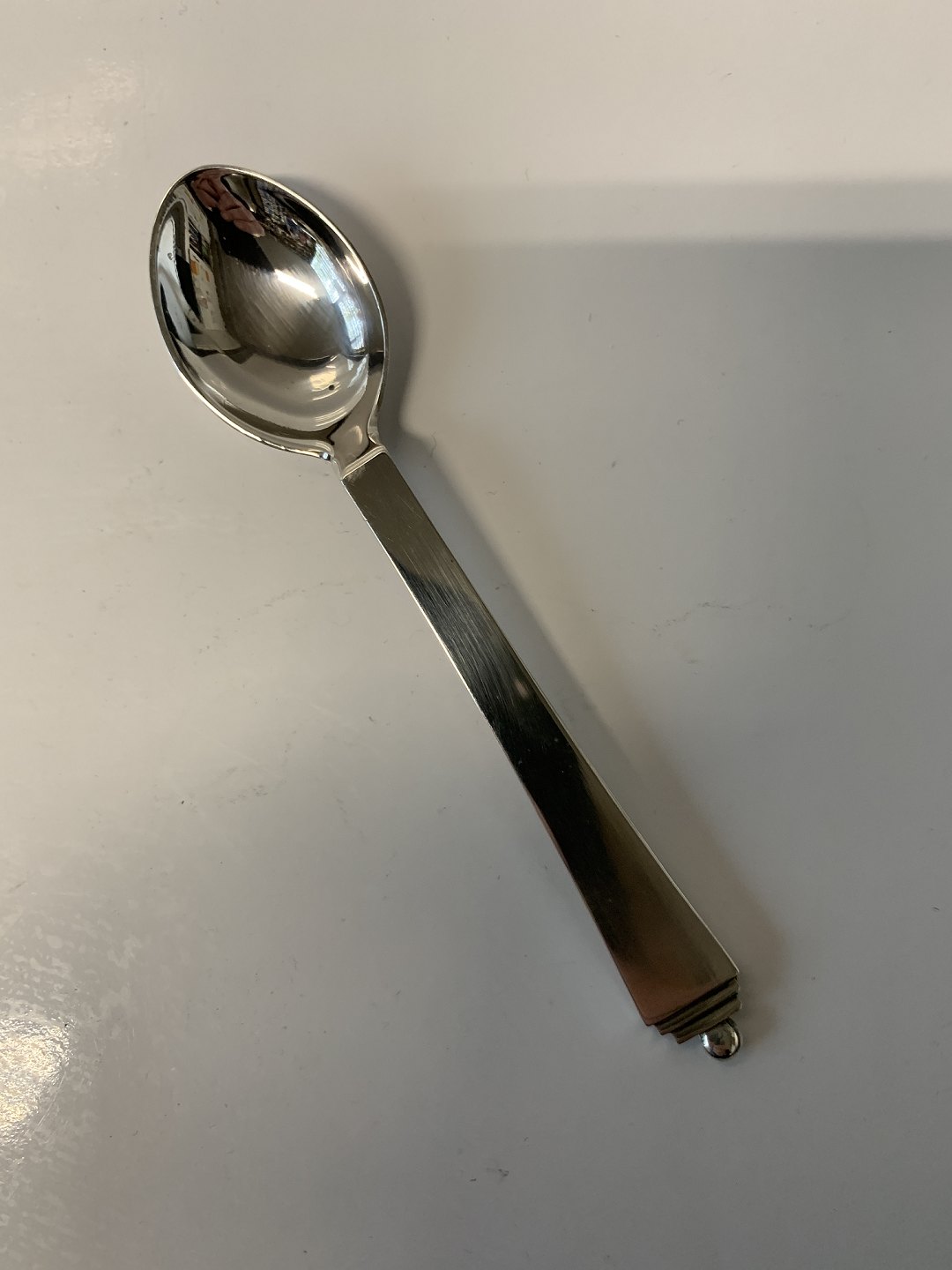 Pyramid Coffee Spoon Sterling silver Made by Georg Jensen. Design: Harald Nielsen 1926 Length 10.5 cm. Well maintained condition All cutlery is polished and packed in bag