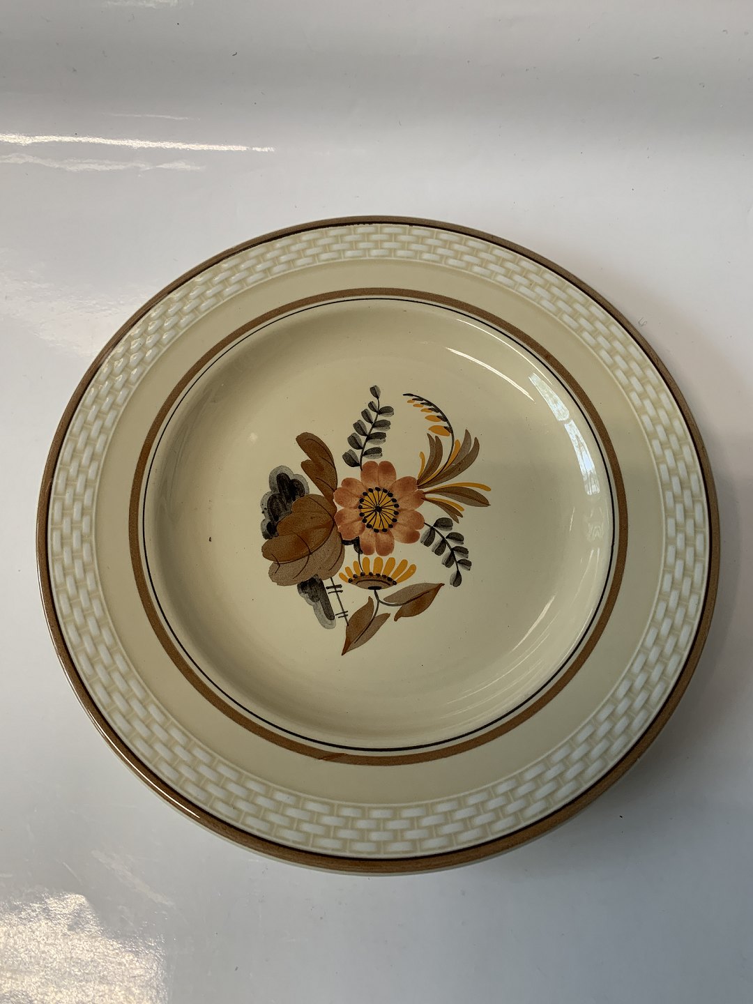 Aluminia faience. Knud. Flat dinner plate. Design Nils Thorsson. Hand painted. Produced in the period 1934-1963. Diameter 23 cm. Good condition.