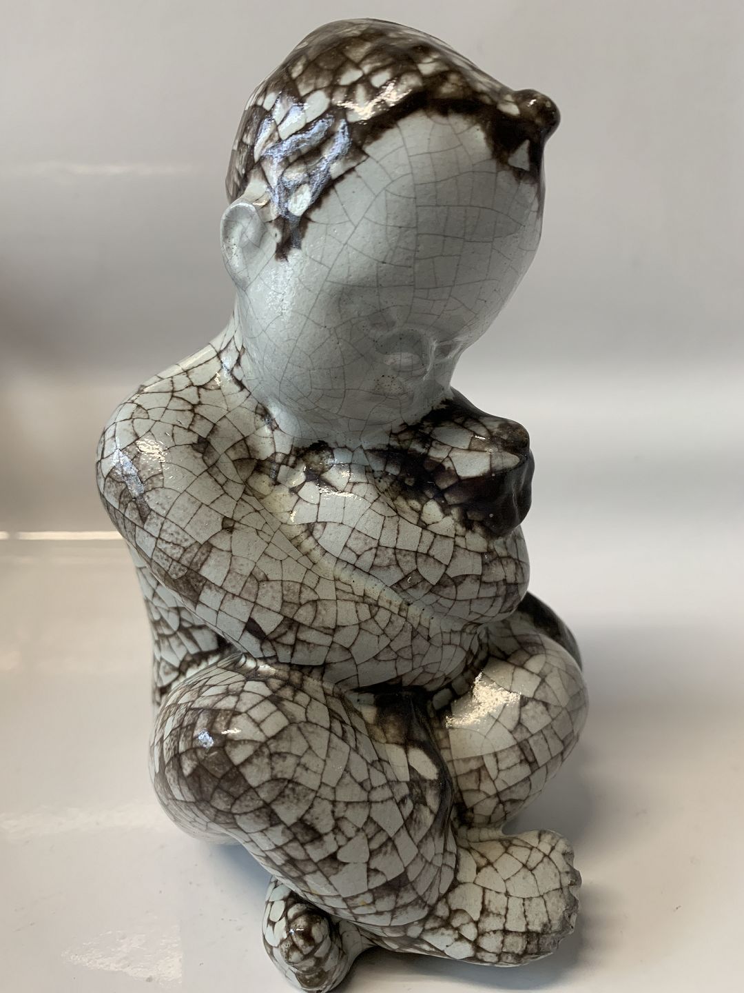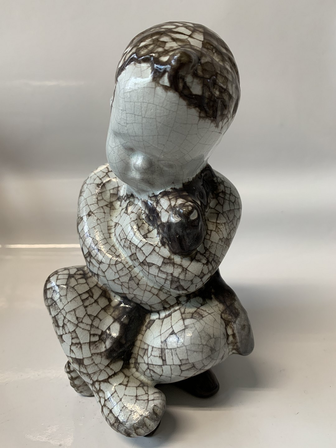 Bornholm pottery, Michael Andersen, Boy with dog. Decoration number 4741. Height 15 cm. Perfect condition.
