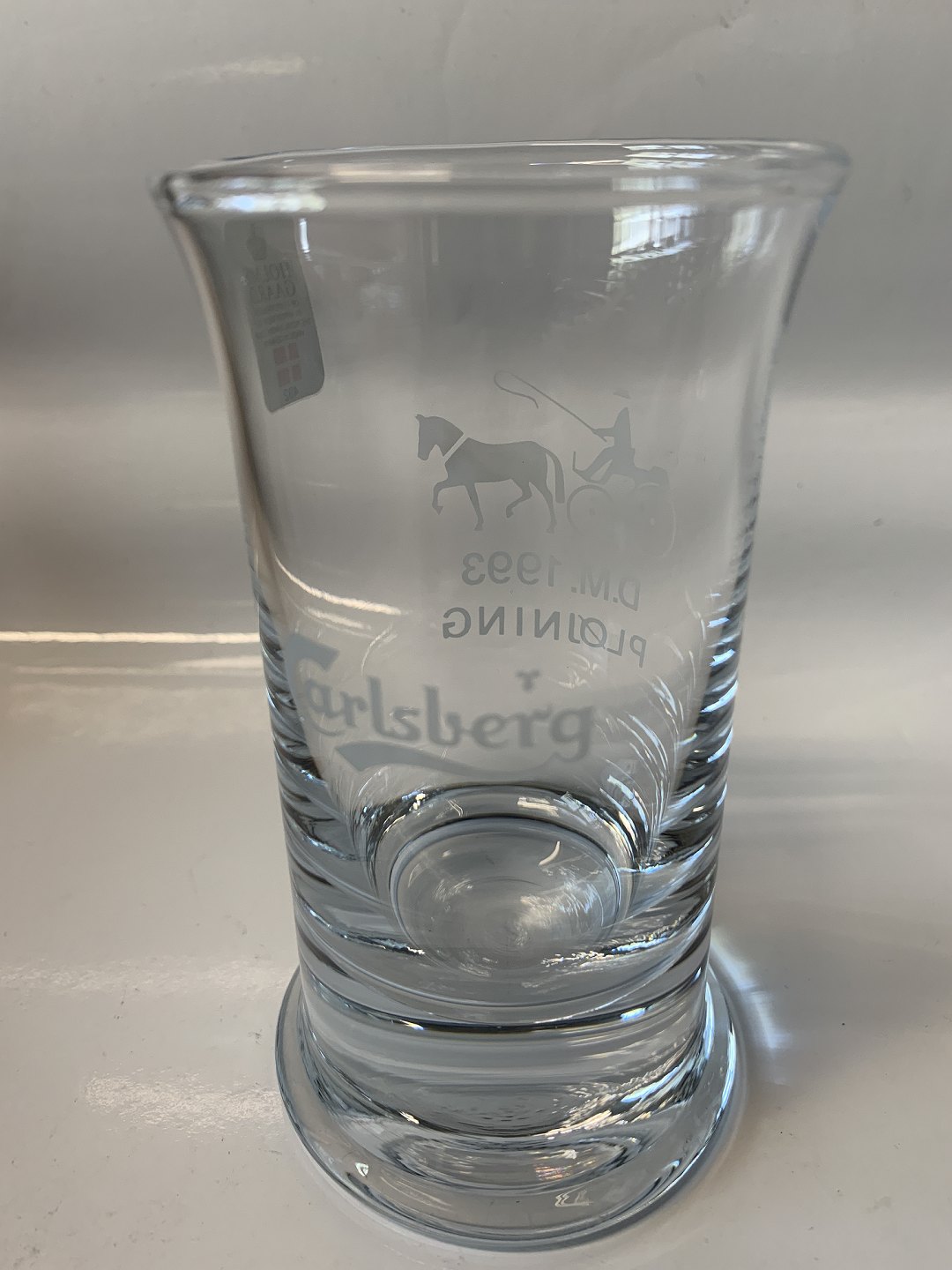 Water Glass No. 5 From Holmegaard With Logo: Carlsberg and Pløjning D.M. 1993. Designed by Per Lütken 1970. Height 11 cm. Diameter 6 cm. Nice and well-maintained condition
