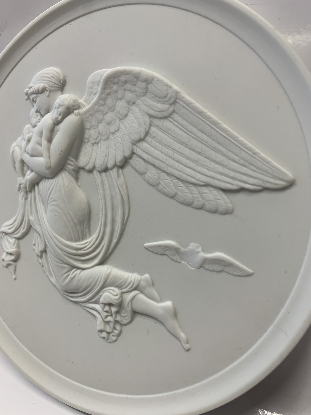 Royal Copenhagen Bisquit plate by Thorvaldsen, night. Stamped "Royal Copenhagen ENERET". 1st grade. Measures 15 cm. With a small flaw on the owl, otherwise neat and well maintained.