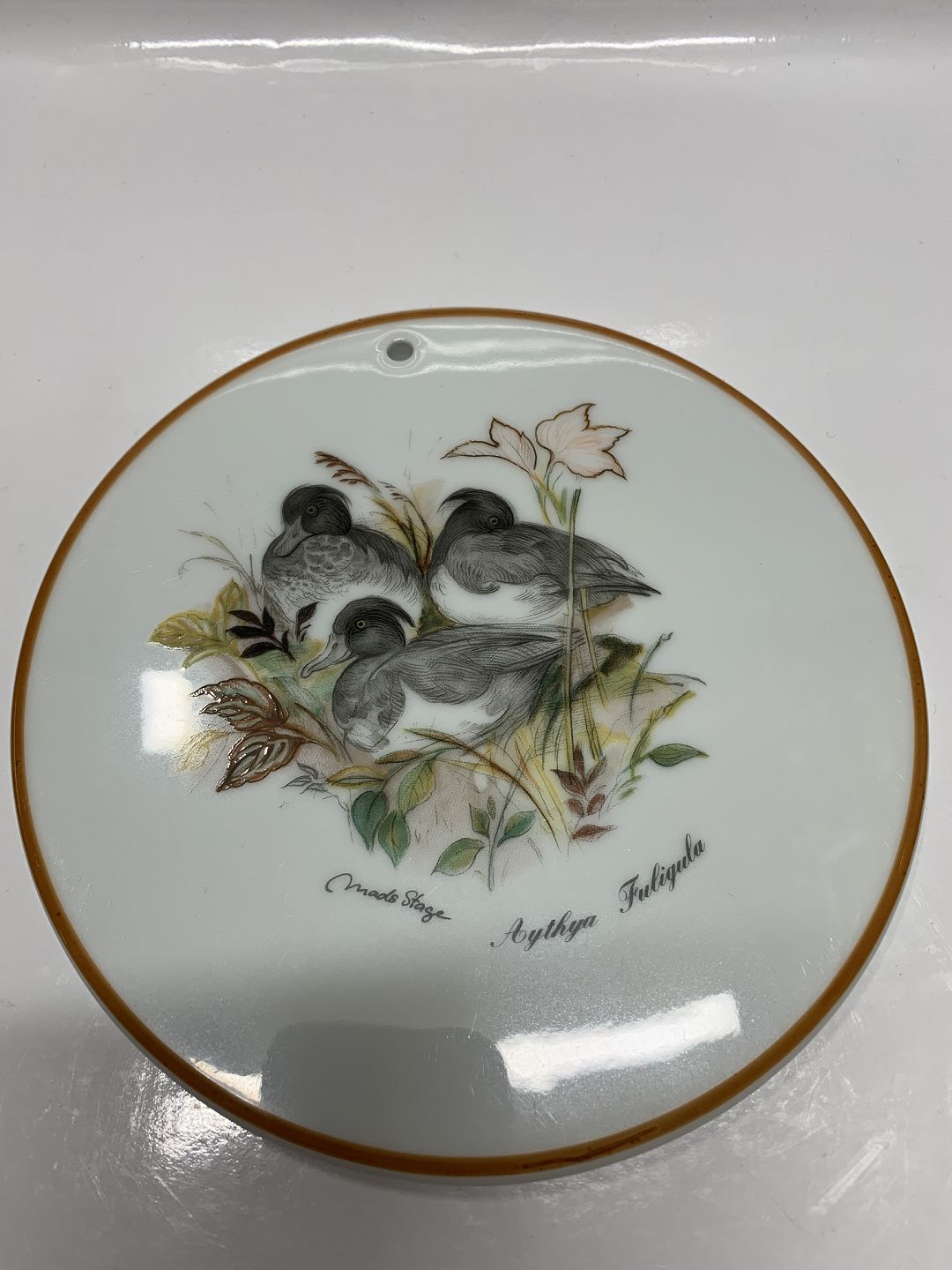 Hunting set Mads Stage Butter tray / Plate, (Aythya Fuligula) Troll Duck Diameter 16 cm. Nice and well-maintained condition