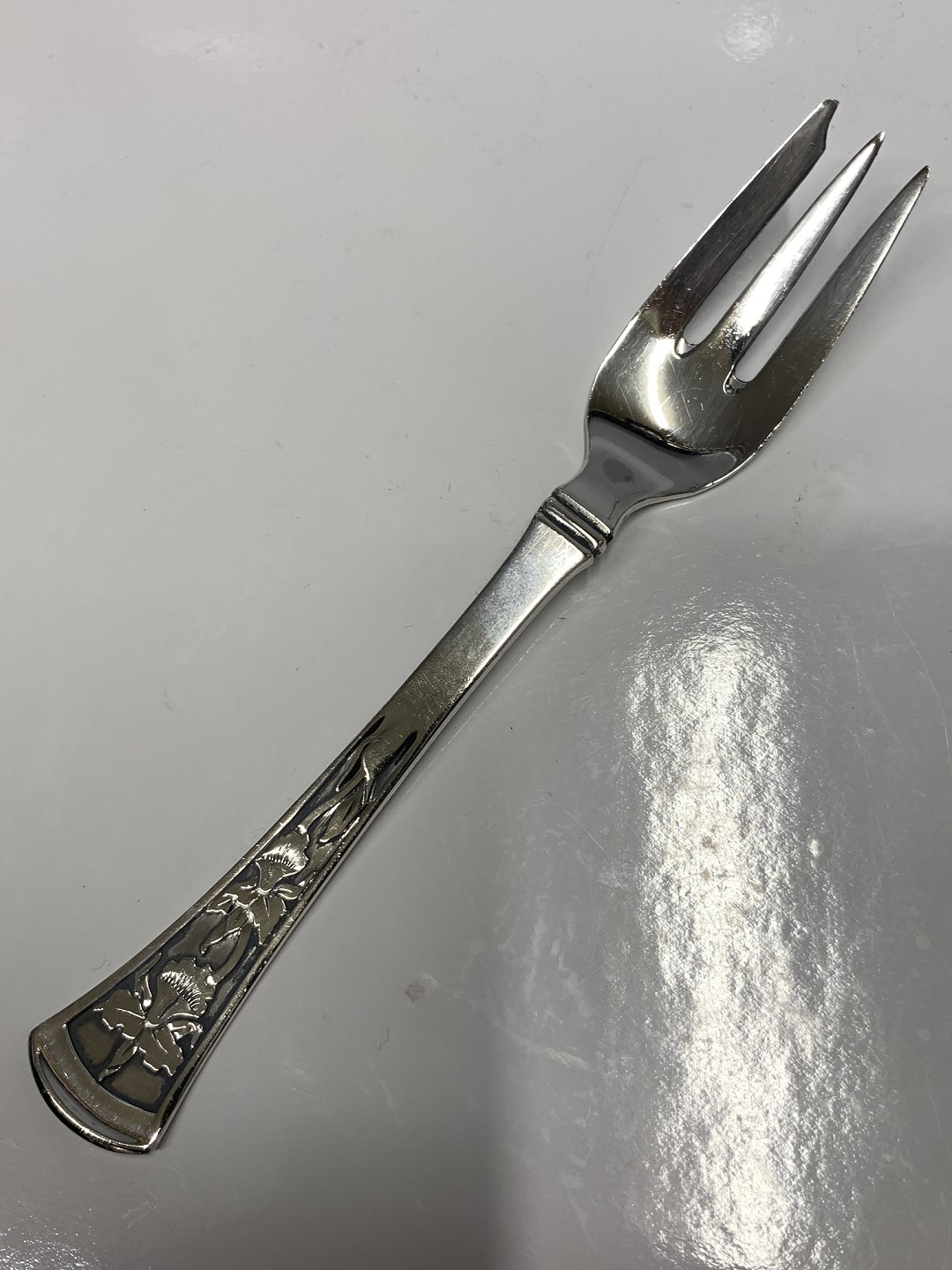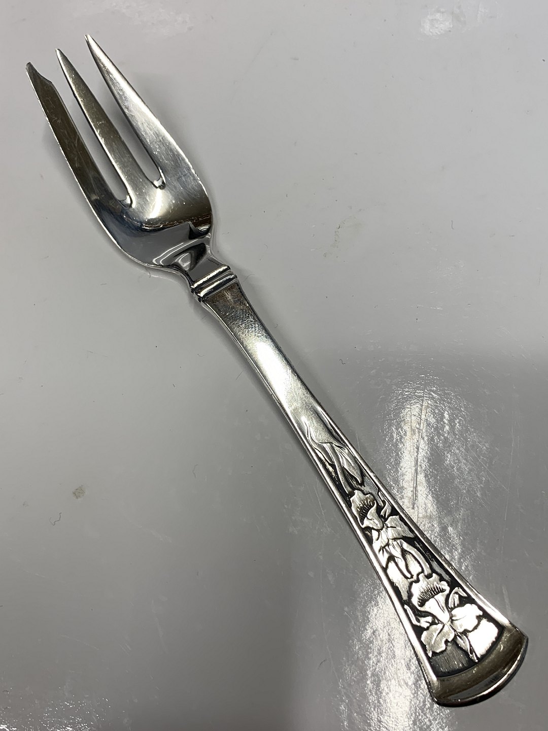Orchid / Orkide Cake Fork in Silver Length 13.5 cm Made at Horsens Sølvsmedie, Orkide silver cutlery 830s Nice and polished condition Packed in bag