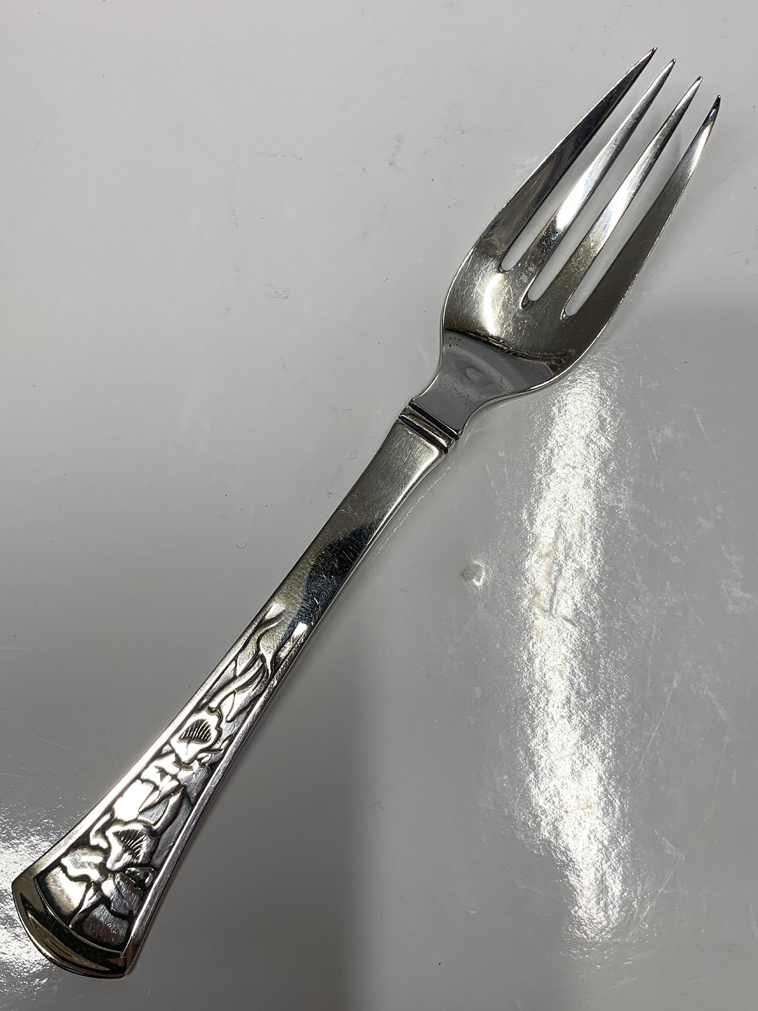 Orchid / Orkide Children's Fork in Silver Length 15.2 cm Made at Horsens Sølvsmedie, Orkide silver cutlery 830s Nice and polished condition Packed in bag