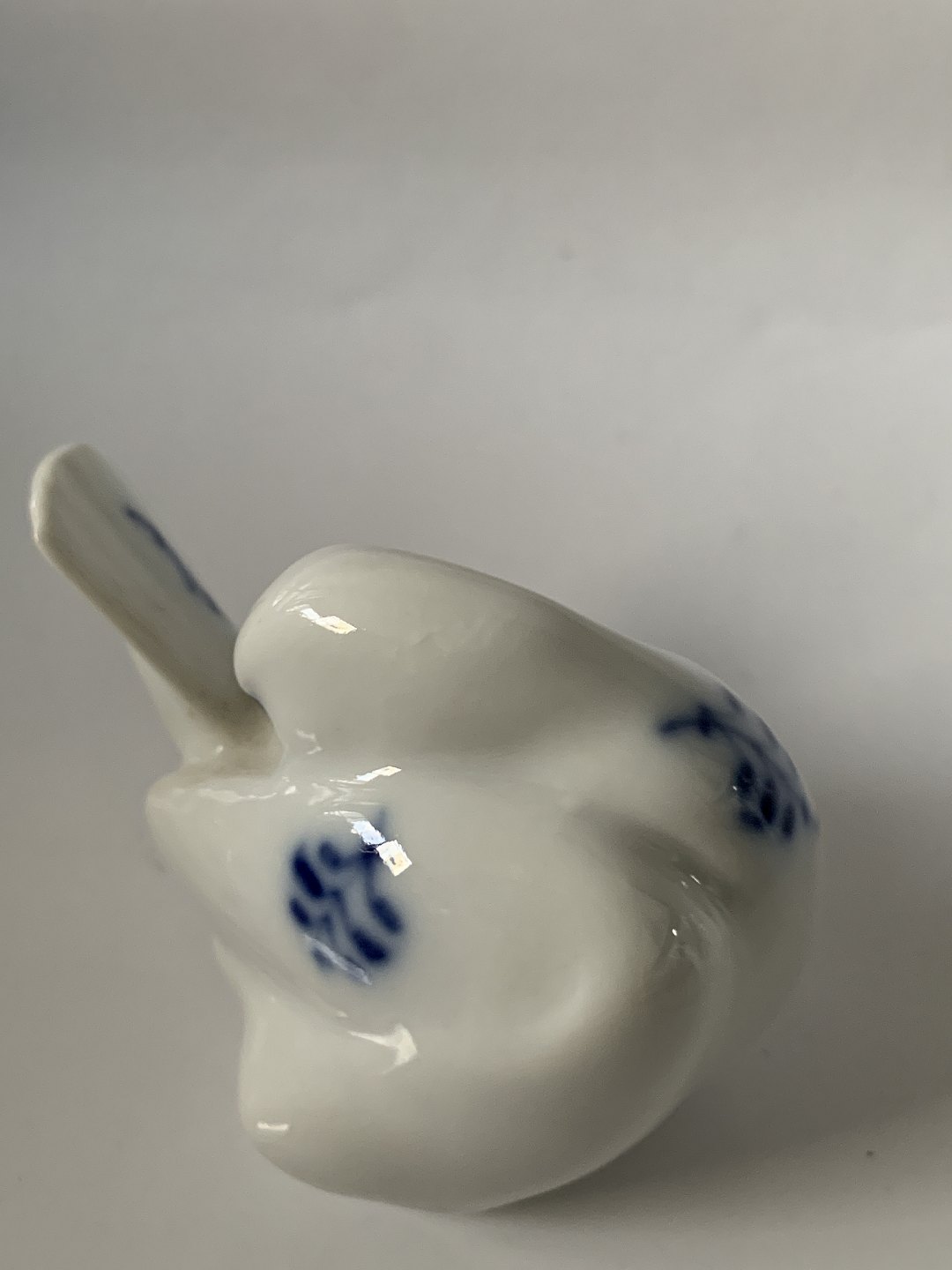 Royal Copenhagen Musselmalet, miniature figur af fugl (spurv). 1. sortering. Længde 5,5 cm. Perfekt stand uden fejl.