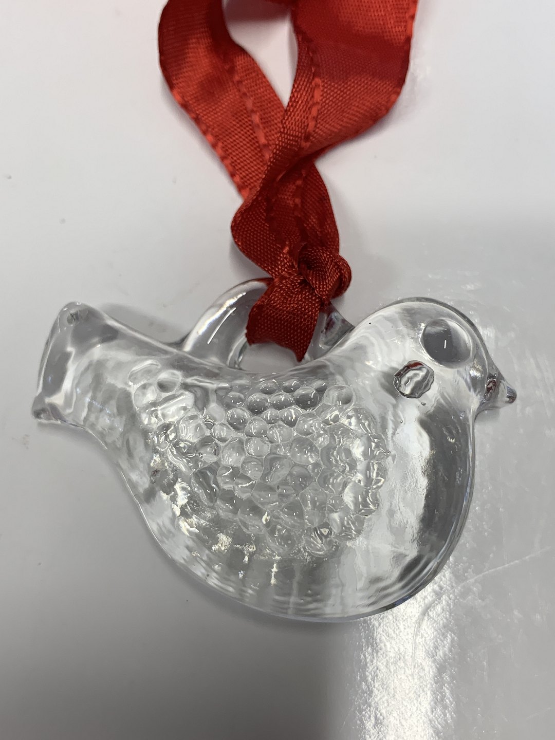 Super flot juleophæng i glas, designet af Bertil Vallien for Kosta Boda. Hæng den søde due på juletræet, en gren, i vinduet eller ned fra loftet. Den fremstår i flot og hel stand.