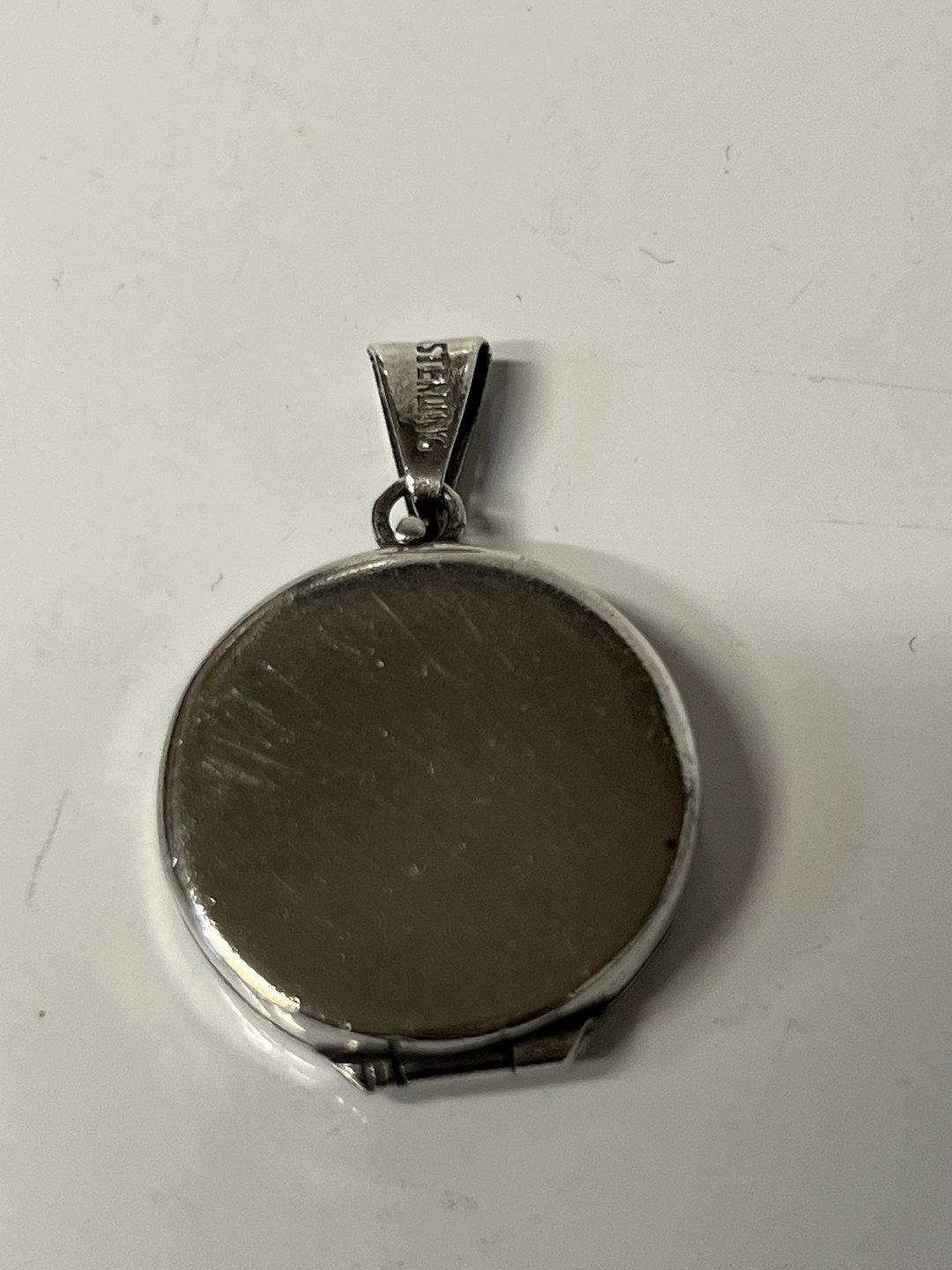 Medaljon i sølv med monogram Stemplet Sterling Højde med øsken 3 cm Diameter 2 cm Pæn og velholdt stand