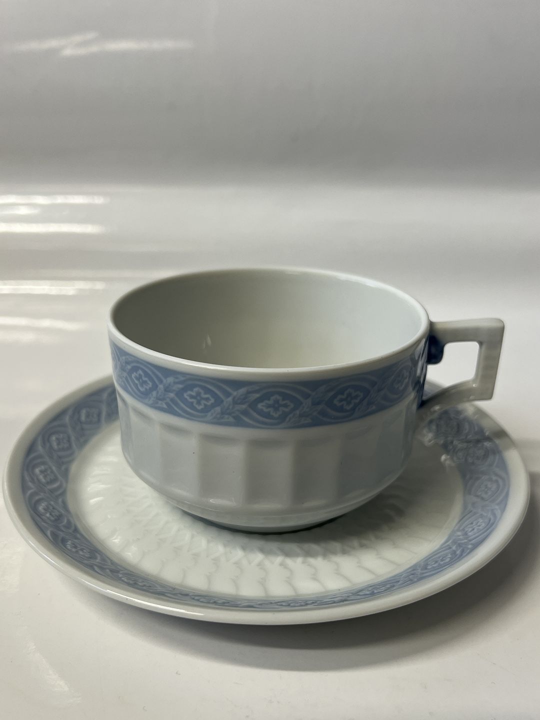 Royal Copenhagen Blå Vifte, ekstra stor morgenkop / chokoladekop med tilhørende underkop.