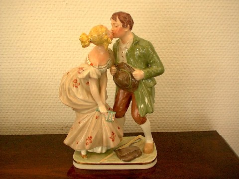 Et par sjældne Kongelige Overglasur figurer fra før år 1900. Flot dekoreret og udført med detaljer med blomster og lignende fra Flora Danica serien. Højde 19 cm. 1. sortering. Begge er solgt.