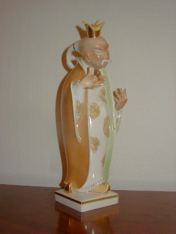 En sjælden og stor Kongelig Figur i Overglasur af Kejseren & Nattergalen, dekorationsnummer 4367, 1. sortering, højde 31 cm.