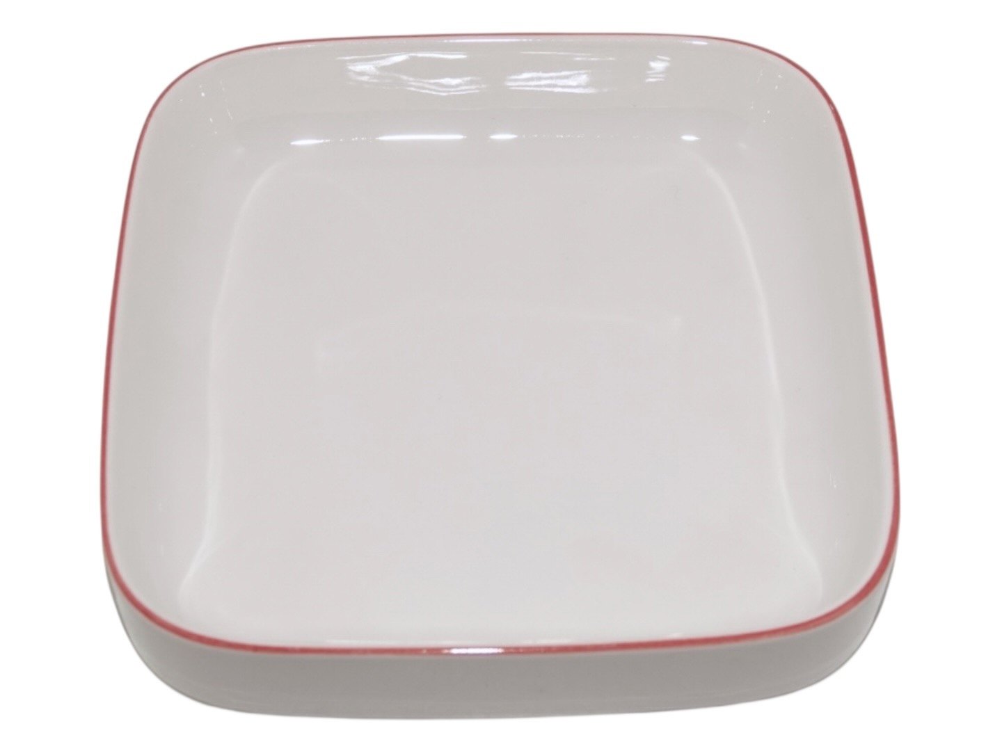 Royal Copenhagen Red Line (Red top), square dish. Designed by Grethe Meyer. Decoration number 3096. Factory first. Measures 14.5 by 14.5 cm. Perfect condition with no chips, cracks or repairs.