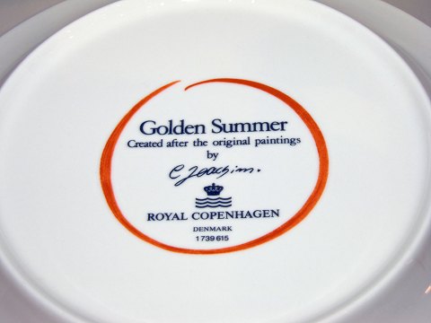 Royal Copenhagen Golden Summer, kagetallerken. Dekorationsnummer 1739615. 1. sortering. Diameter 17,0 cm. Perfekt stand uden fejl.