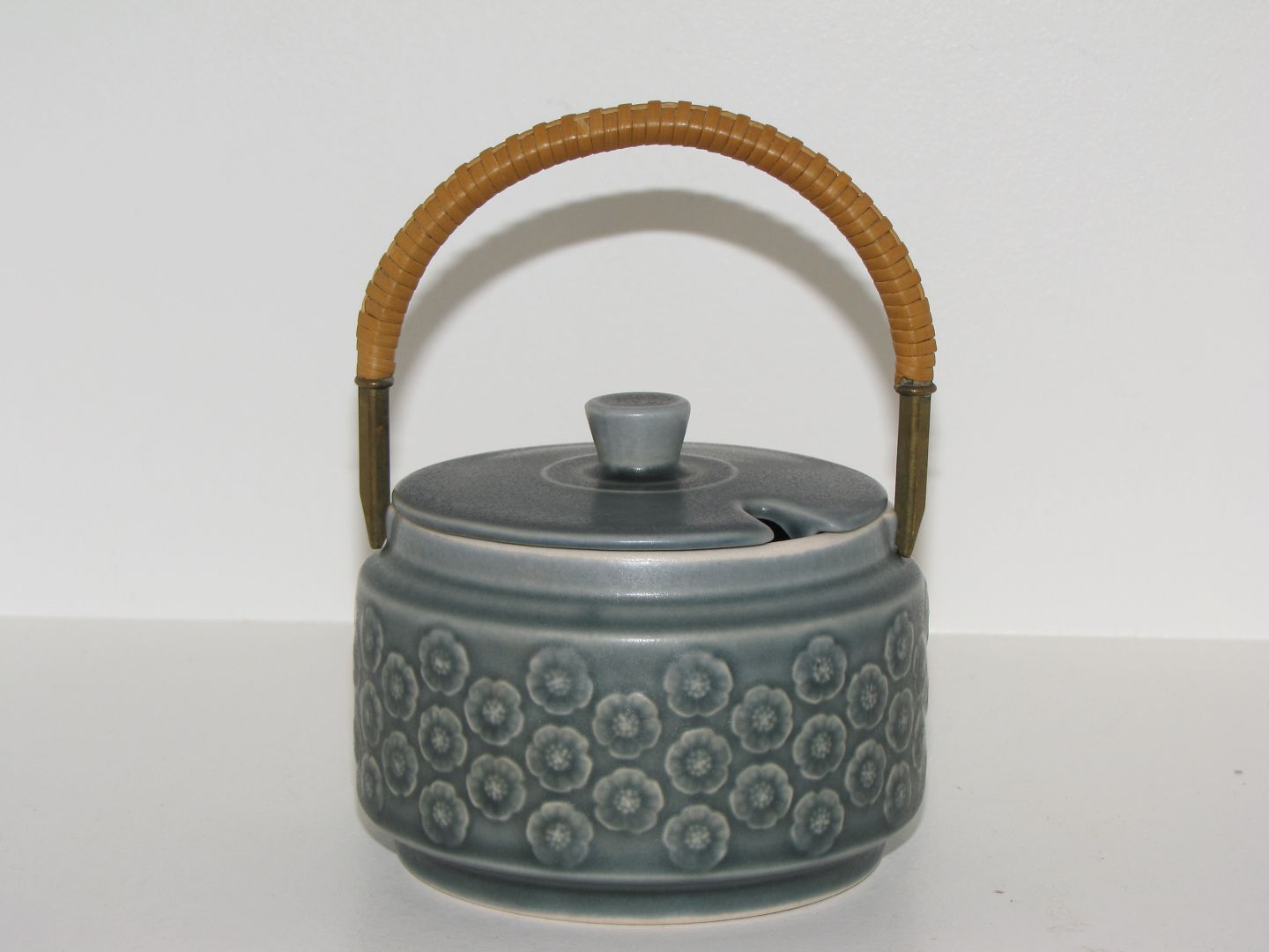 Kronjyden Azur stoneware, lidded pot. Designed by Jens Harald Quistgaard. Diameter 10.0 cm. Perfect condition.