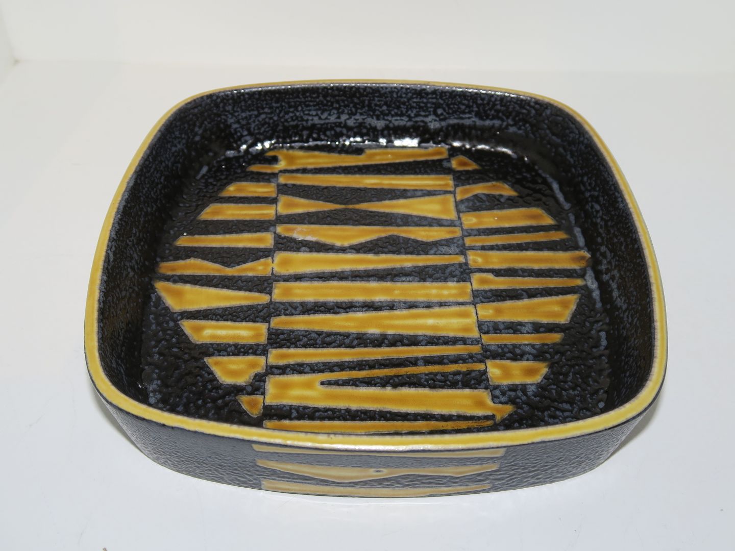 Royal Copenhagen Fajance Baca gul firkantet skål.