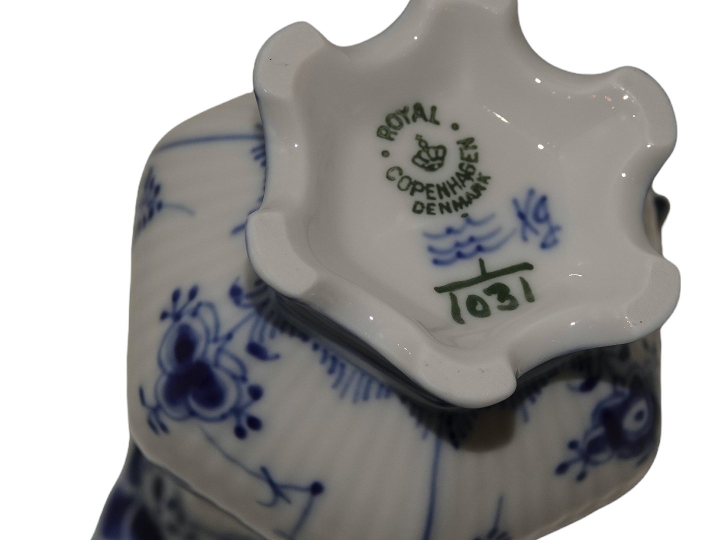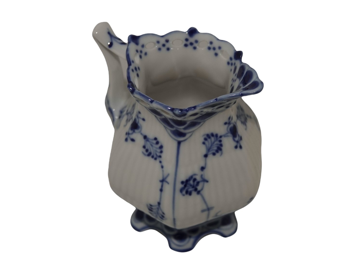 Royal Copenhagen Musselmalet Helblonde, lille flødekande. Dekorationsnummer 1/1031 eller nyere nummer 392. 3. sortering. Højde 8,2 cm. Indeholder 7 cl. Perfekt stand uden fejl.
