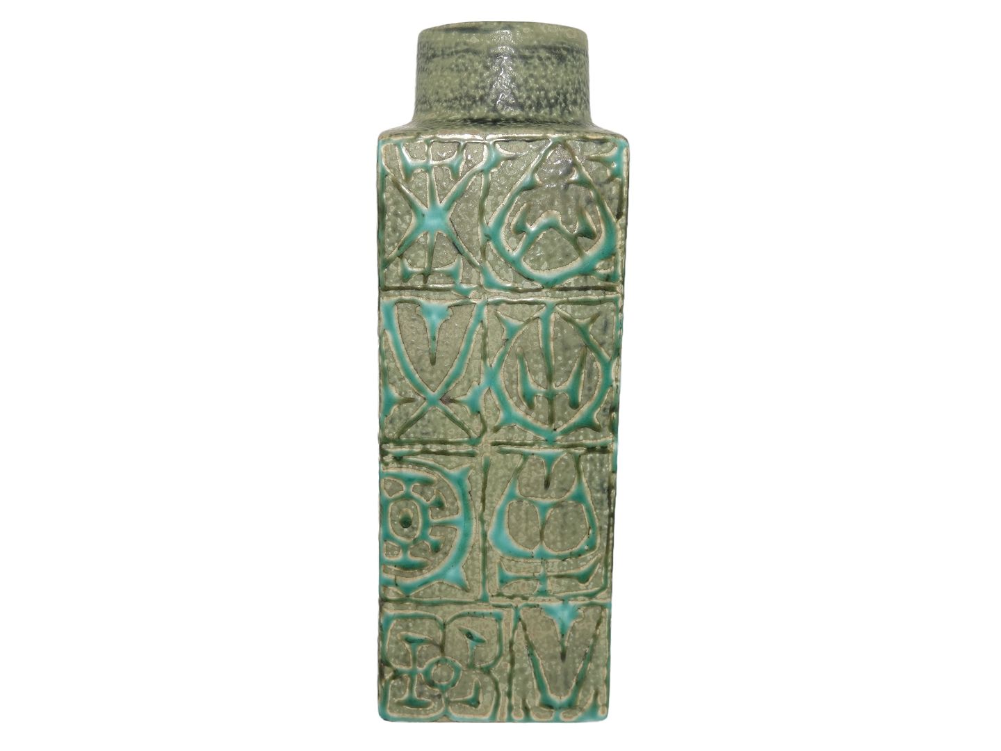 Royal Copenhagen Faience Baca, green vase. Designed (and signed) by artist Nils Thorsson. Decoration number 712/3259. Factory first. Height 23.0 cm. Perfect condition with no chips, cracks or repairs.